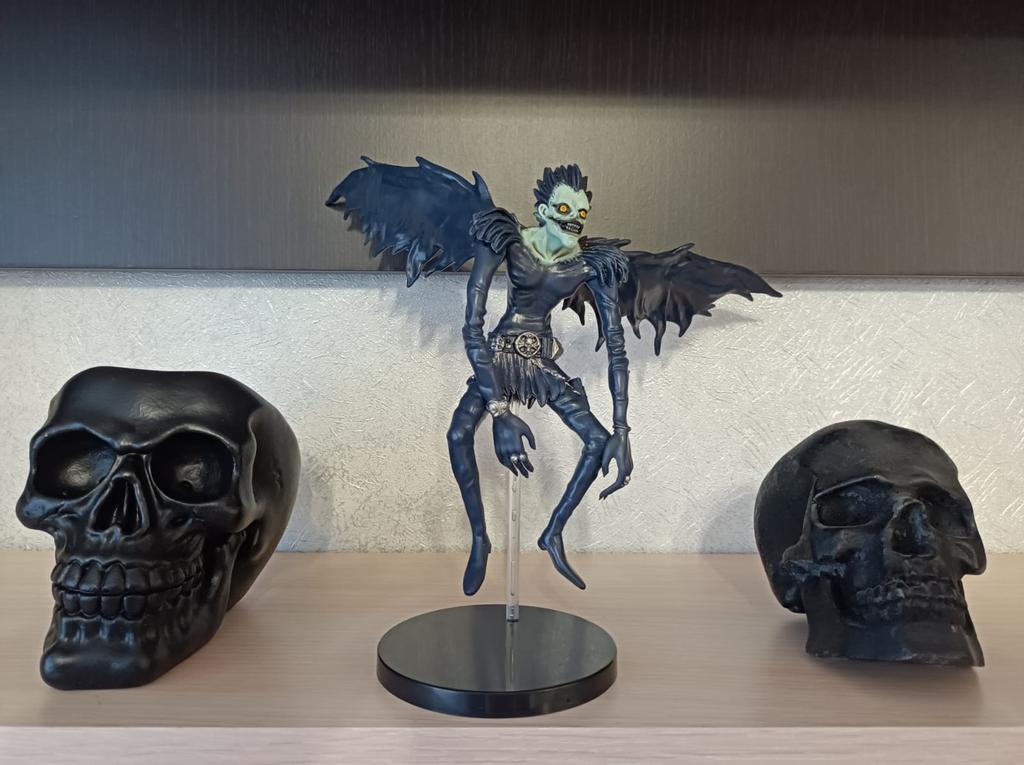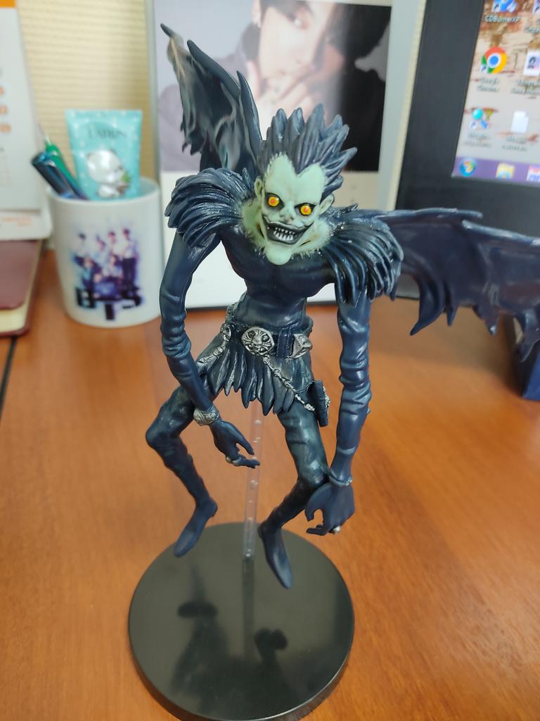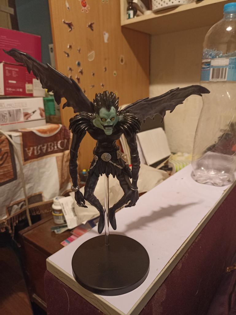 The combined parcel took exactly a month to arrive, including Ryuk. The God of Death was disassembled. But the assembly took 10 seconds.. It is not very stable, as the base is quite light, but it does not fall over.. The quality is average in my opinion, but the person who received the gift is happy.👍🏻