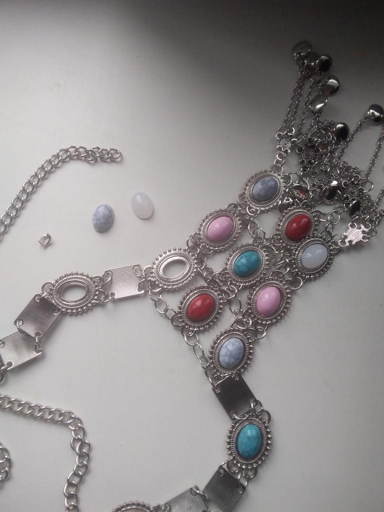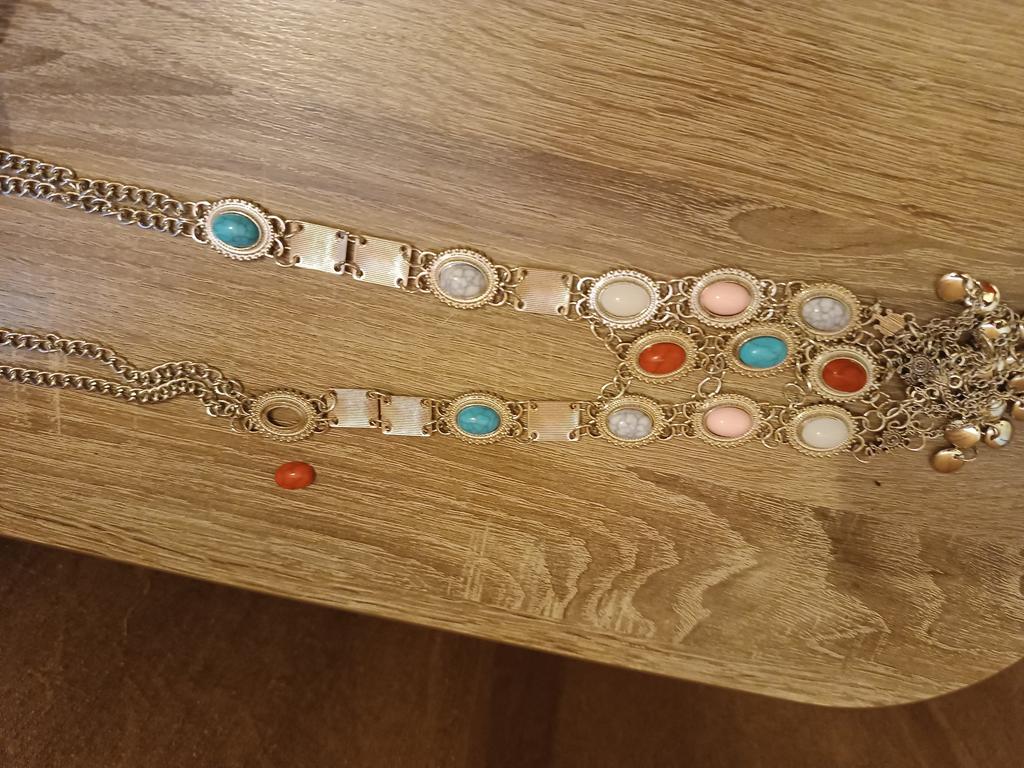 One of the fastenings is missing a stone and it is gone, the item is ruined, but otherwise it is a very beautiful necklace
