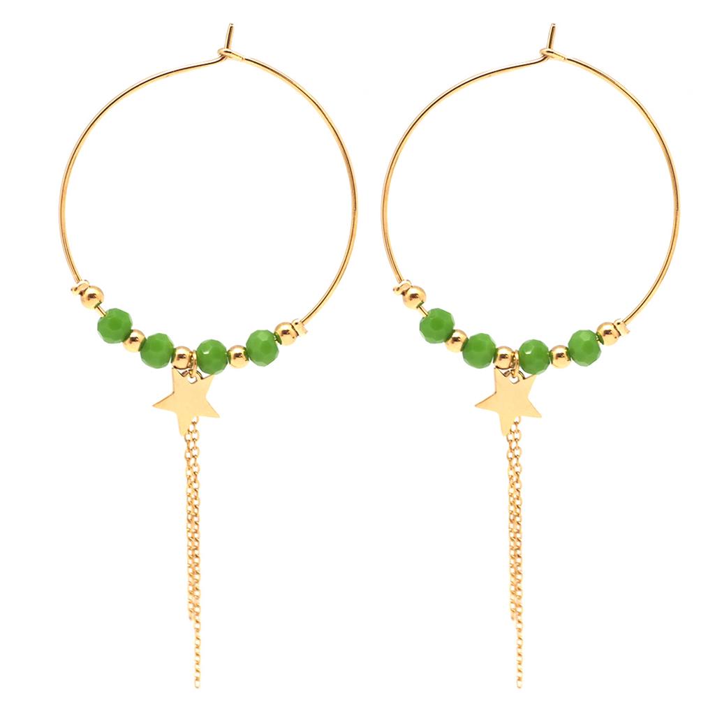 Les Trésors De Lily [Q2593] - Golden Green 'Boho' Steel Designer Hoop Earrings (star) - 35 Mm - 8 Mm