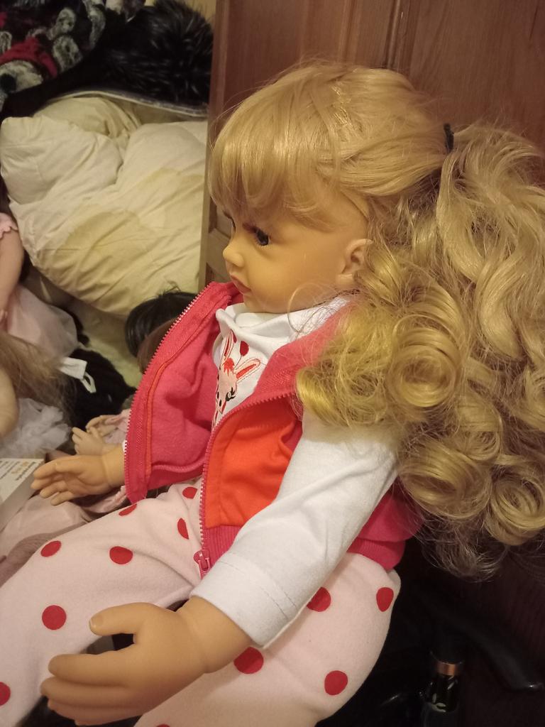 The doll corresponds to the photo. The body is soft stuffed, the arms and legs are thick rubber. Hair like real, pleasant to the touch. Would be a great Christmas present! There is a strong smell of glue, I hope it will fade before the holidays)