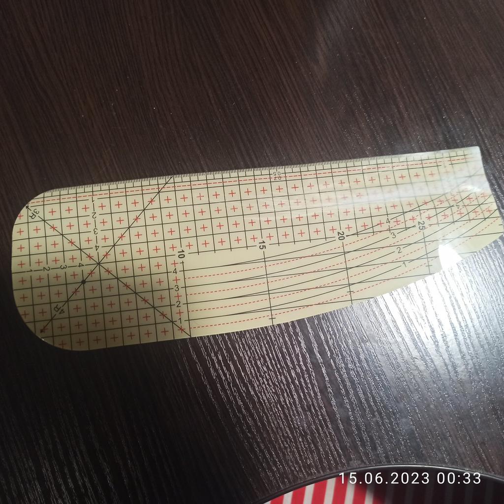 Sewing accessory 🧵🪡 It is a template to be able to give a rounded shape to the corners, it also has a straight part of about 18 cm 📏 that you can use to mark the bottom ( 👖👗👚 ) Specifically, you can round the corners with 3️⃣ different angles according to what best suits your needs. If you like to sew bag-type accessories 👜 and toiletry bags you will get a lot of use out of it. It is made of a very flexible material. On the front it has all the measurements and the back is blank and matte. As a negative point 👎🏻 the shipment has taken a long time, almost two Medea. 📦⏰ Still, I highly recommend it for your sewing workshop.