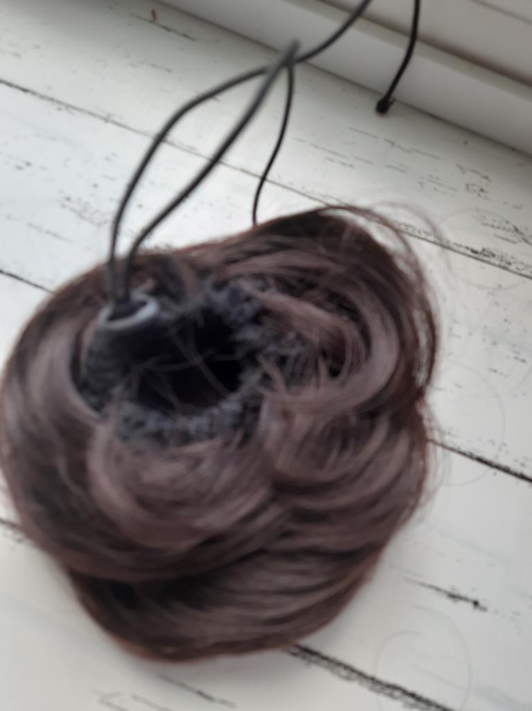 It is a synthetic hair bow with an internal network to adjust it to our hair, it is available in various shades to choose the one that best suits our hair.. My hair color is dark brown. To place it in as easy as putting it in our bun and adjusting it with the net that it comes with. I liked it a lot to give more volume to a bun, to change the look or to go to any event. It comes protected in a net so it doesn't get tangled. It takes about three weeks to arrive in Spain ๐ช๐ธ