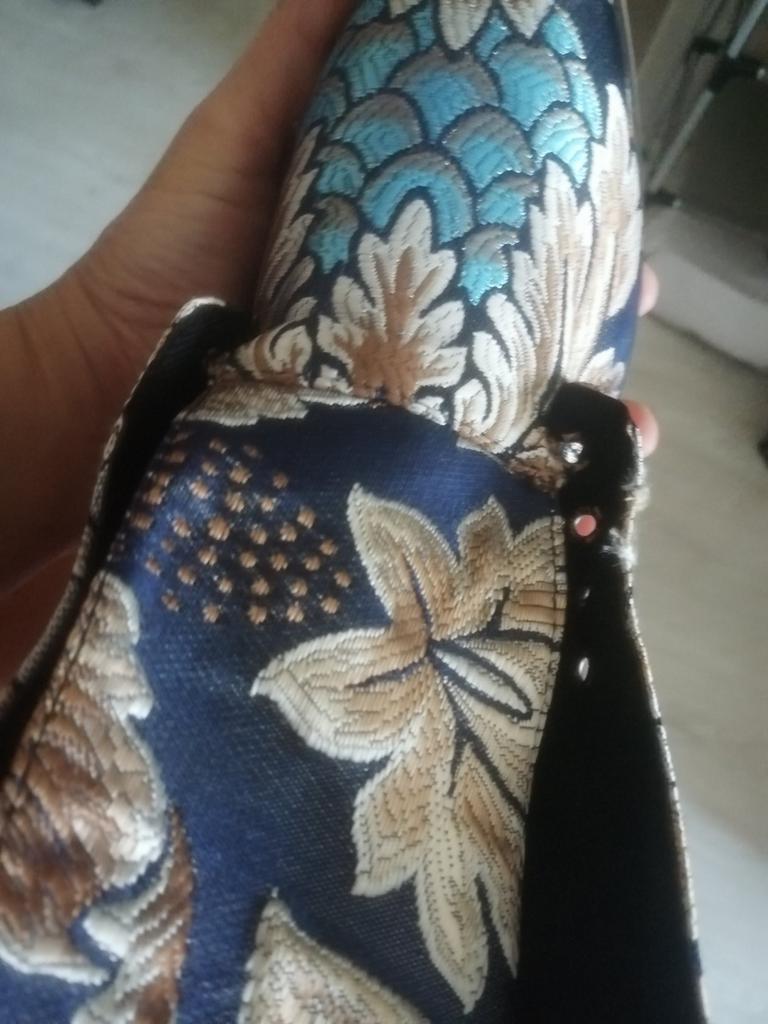 Runs large. And there is a lot of gold thread. It is not visible at all in the photo. A gypsy version, not worth the money.