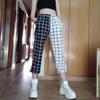 Vintage Plaid Patchwork Pants Harajuku Woman Trousers Elastics High Waist Pants Causal Straight Checkerboard Plaid Prited Pants