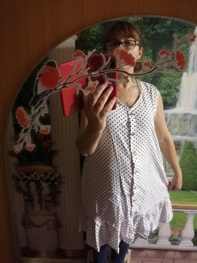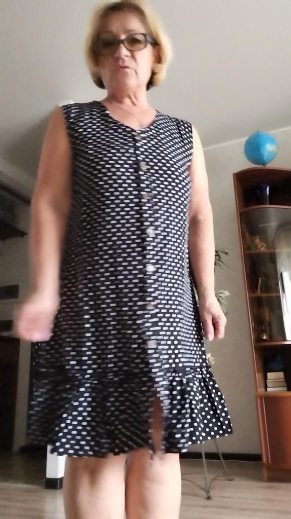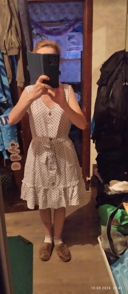 The size is more suitable for m-ku, but the difference is not critical. The fabric is synthetic, slightly translucent. But, in principle, an everyday dress is not bad