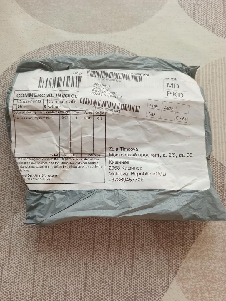 The goods arrived a month after placing the order.