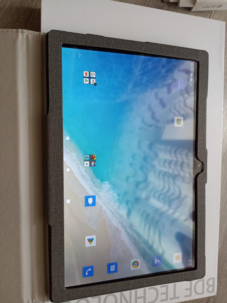 The tablet is super, the case has slight defects, it extends beyond the edge when operating on the screen, it binds the edges of the case interfere with perfect control