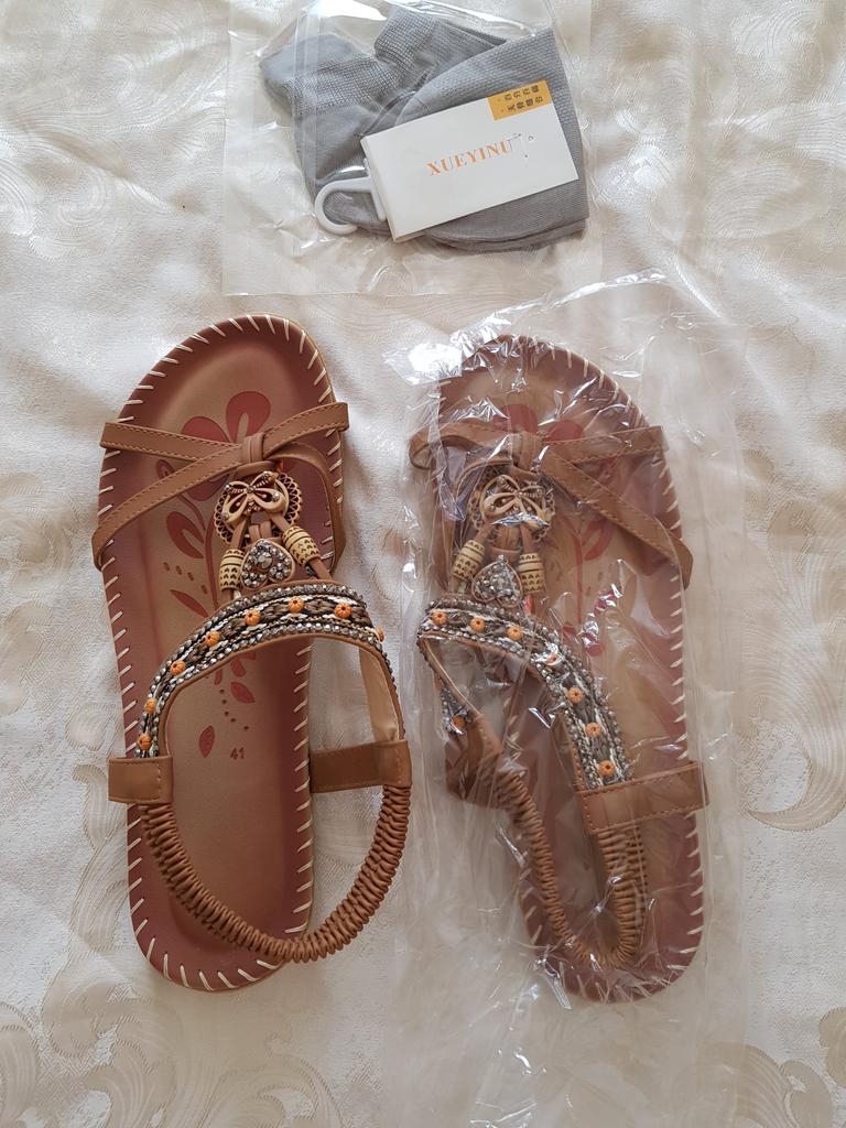I received the goods, the sandals fit my feet, I am happy, the goods were packaged well, everything arrived normally, the dress suits me, but it is very long, I am afraid I will not wear it