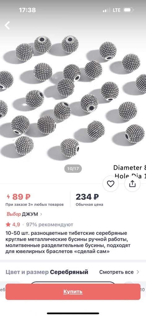 Very beautiful beads, it is a pity that there are no such larger diameters, the number is 10 pcs.