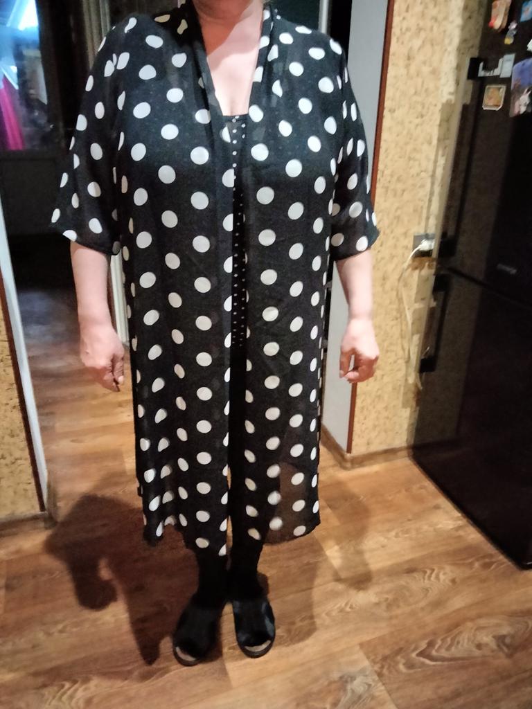 Everything is fine. In the summer it will be like a find. for 56 size cape 5XL loose. Pleasant, weightless fabric. Thank you to the seller and the joom team.