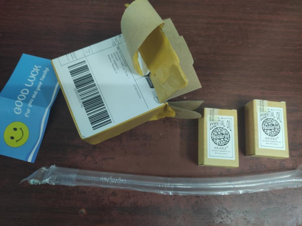 The smell is pleasant, everything is whole, nothing spilled, the packaging is super