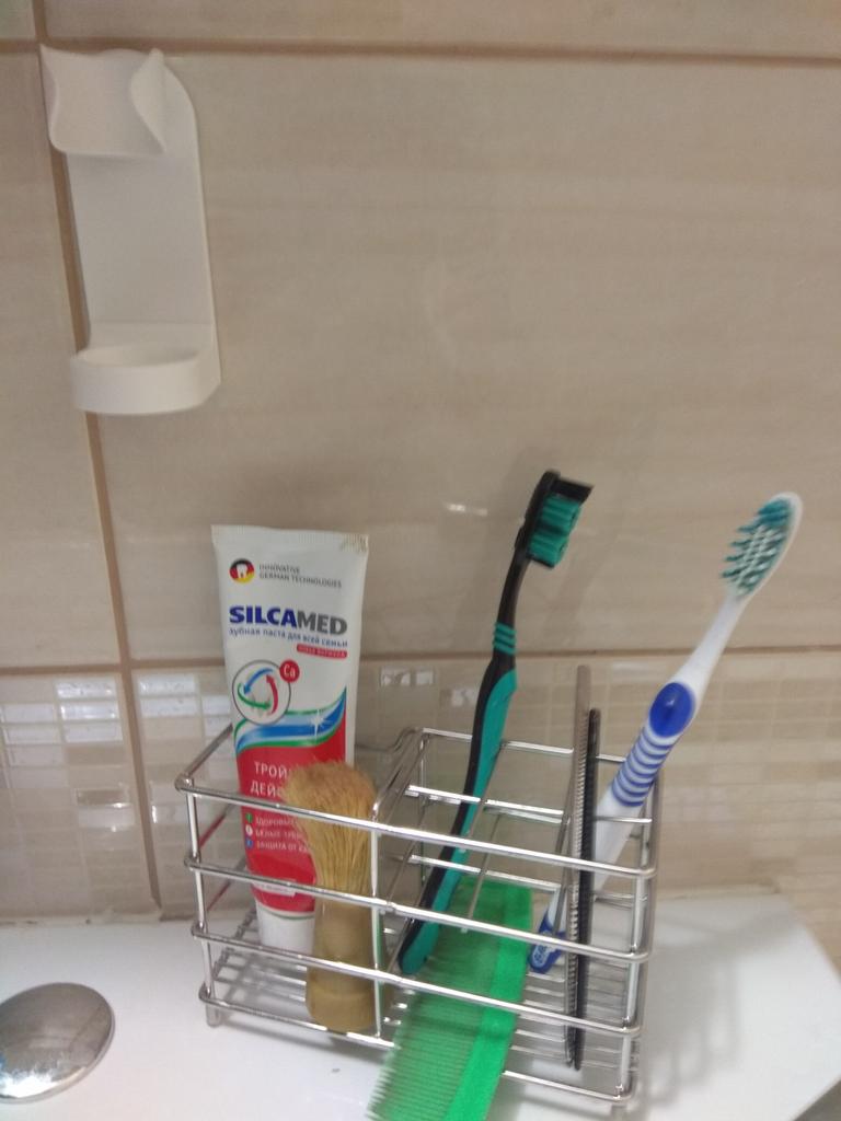 The stand is good, everything is as in the description, only the adhesive tape does not hold the toothbrush, after gluing it fell off after 2 hours (