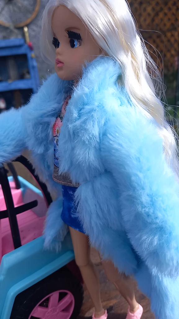 Multicolor 1 Set Long Sleeve Soft Fur Coat Tops Dress Winter Warm Casual Wear Accessories Clothes for Barbie Doll Kids Toy