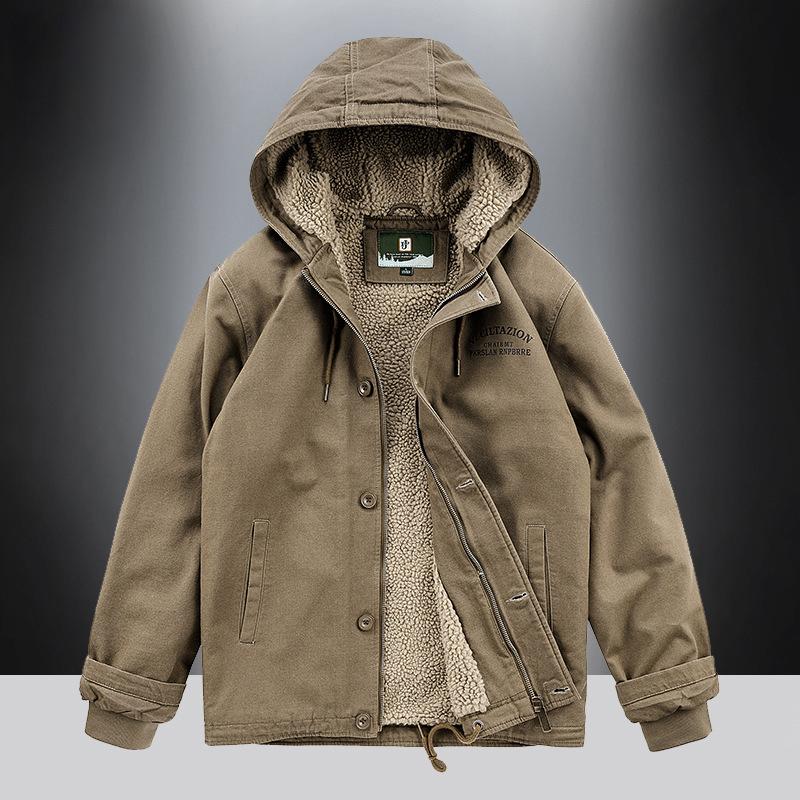 Autumn Padded Jacket Men's Plus Velvet Padded Padded Jacket Hooded Lamb Fleece Jacket