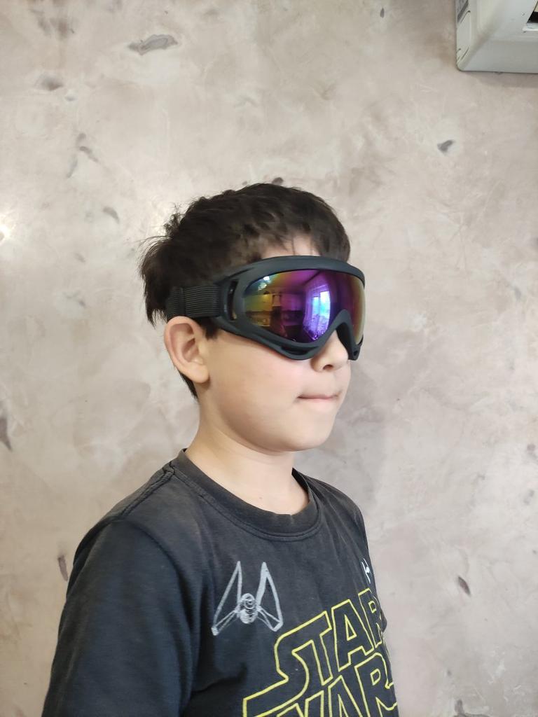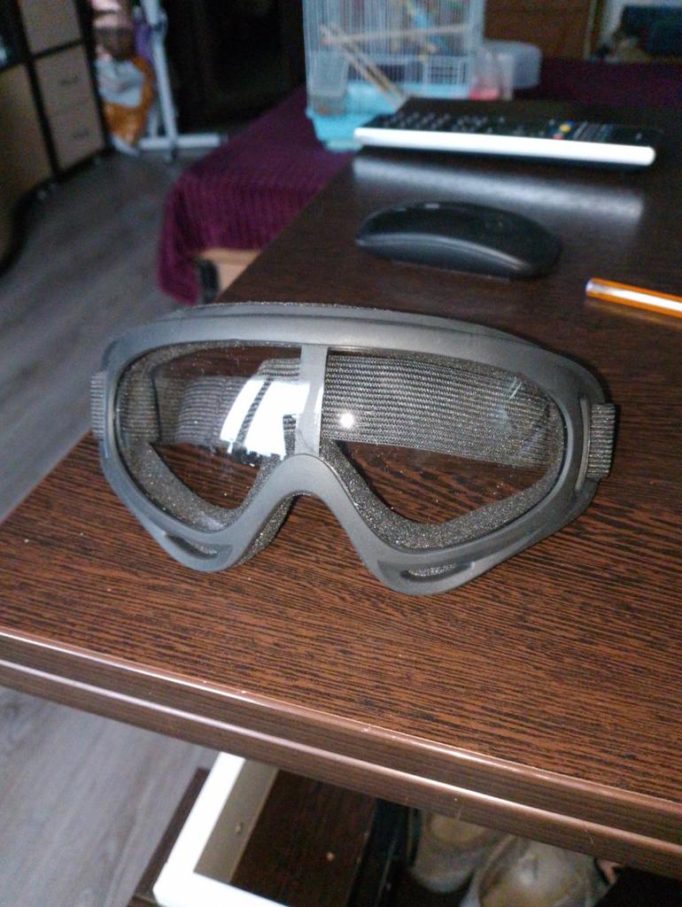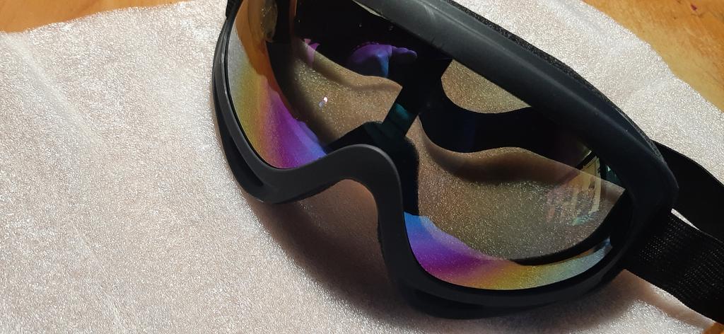 They are light, with sponge protection around the eyes, adjustable elastic, unfortunately the glass was scratched, probably during packaging. Disturbing to look at.