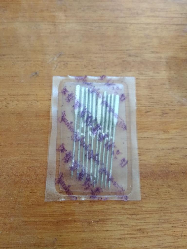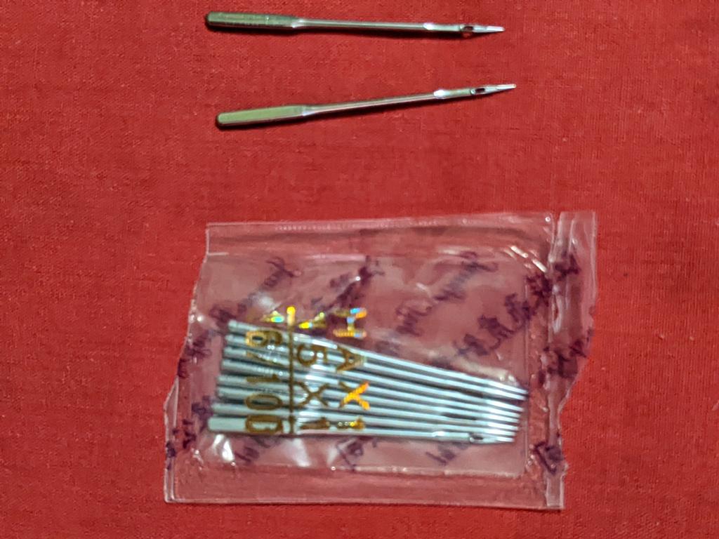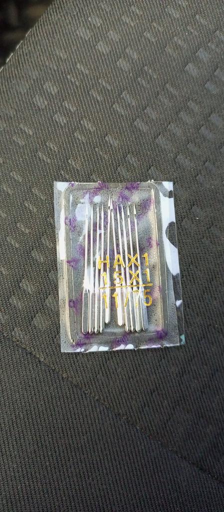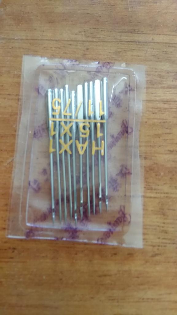 Nice needles. They approached the home machine. I haven't tried sewing with them yet. They cost 97 cents. 10 pieces. Semi-circle holder. Where the needle is inserted.