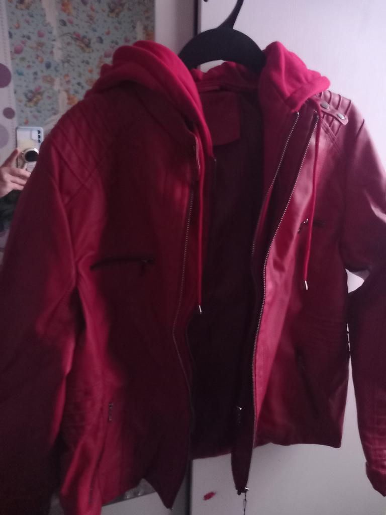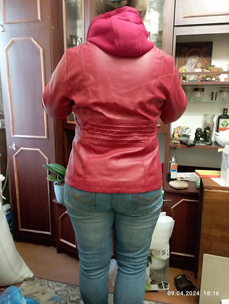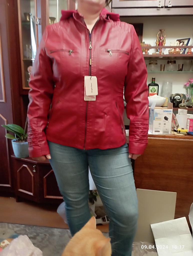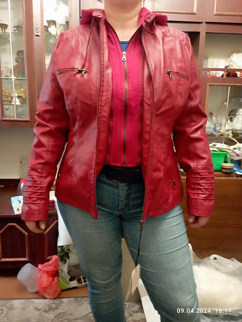 I ordered red and received the color of ripe cherry. The color is dull! Rude! The shoulders are wide, the sleeves are narrow and long!!! I didn't like it.