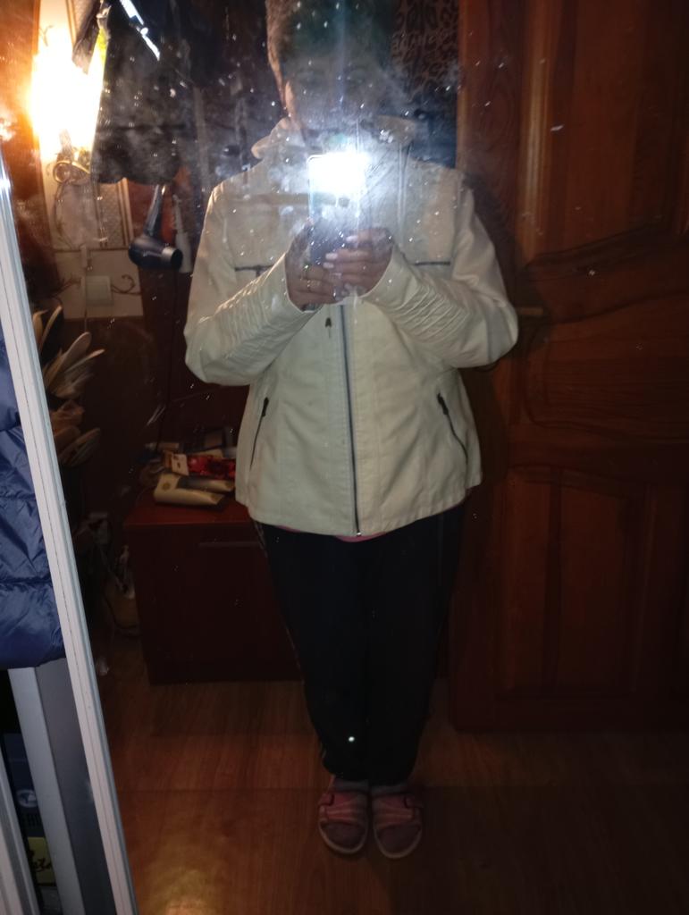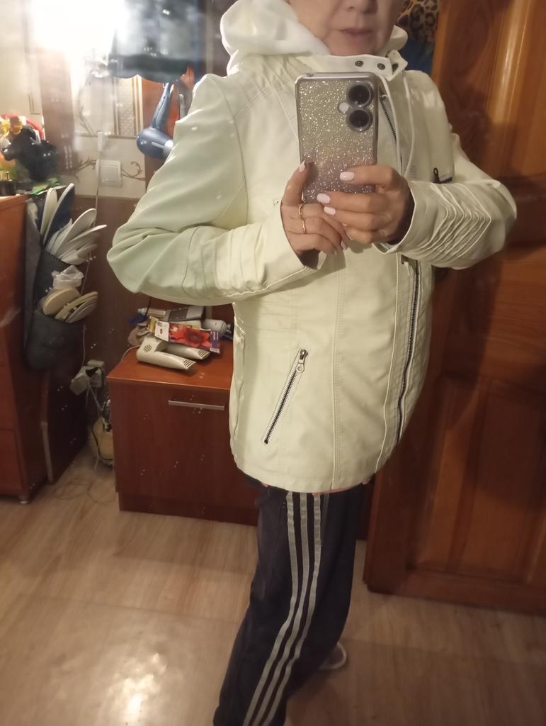 The jacket is good, well-made, but it's not white, but yellowish artificial leather. It's large for a size 50.