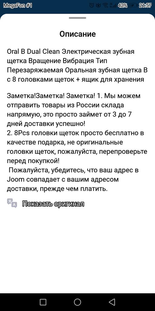 To all JOOM employees, A BOW BOW. Product clearance is 200%. The miracle brush arrived charged. I can’t say anything about the charger (whether it works or not), since the product is fully charged. I use such devices. My brush served me for 12 years. All attachments are out of order. The motor works like a clock. Unfortunately, the old model of attachments could not be matched to my favorite brush. We bought a new one. We will use it.