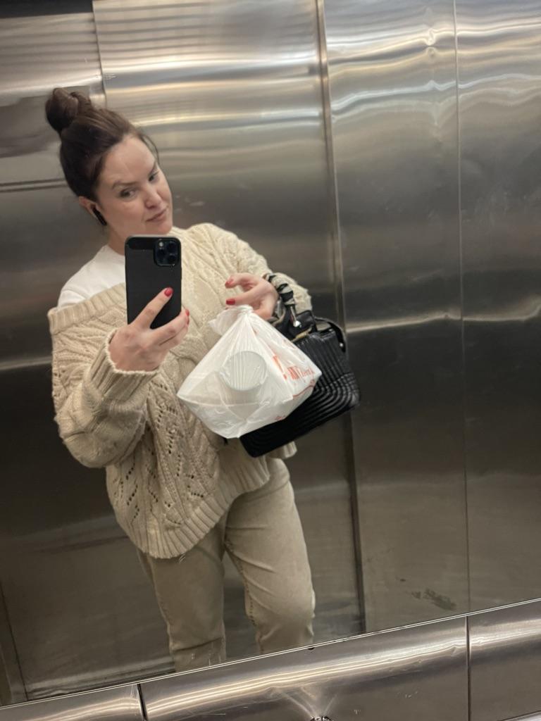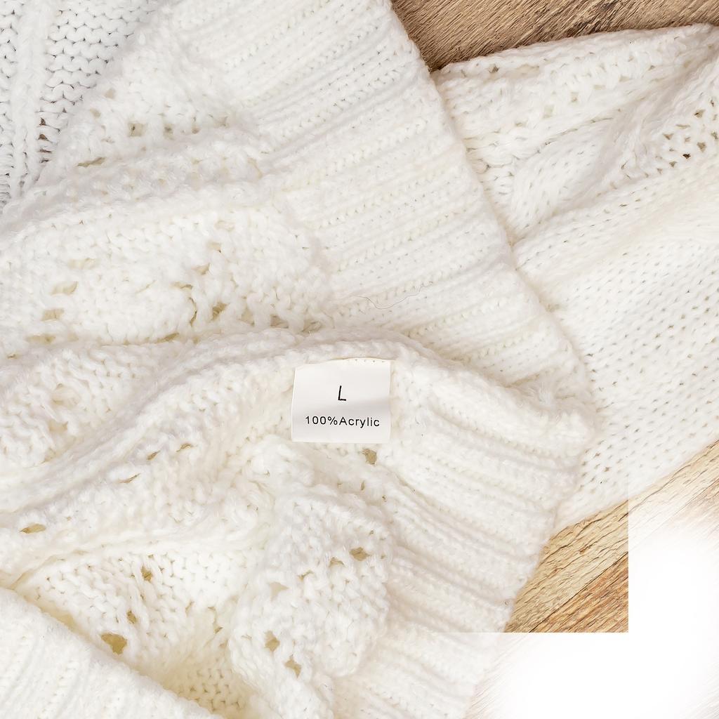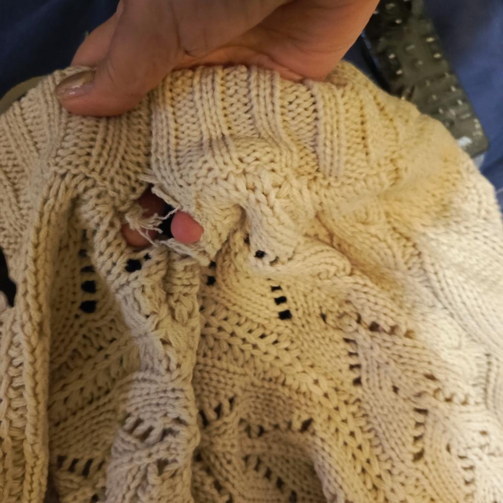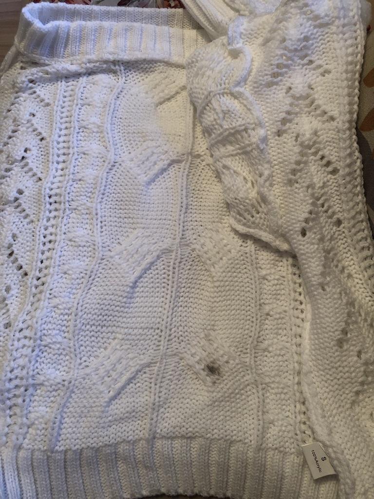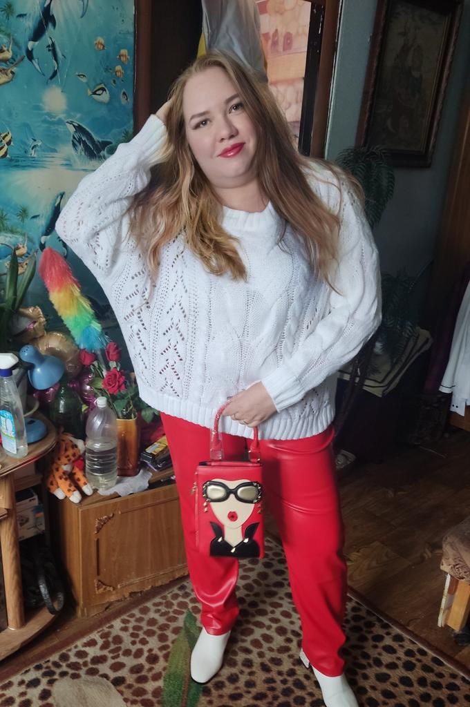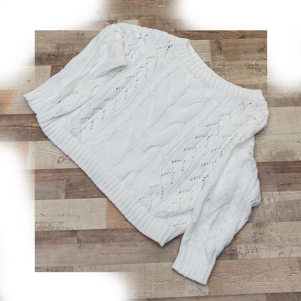 On the size 42-44 ugly large. The shoulders are very large, due to this the sleeve hangs, even if you turn it up, the sides hang a lot, well, very much ... and I don’t know how to fix it yet .... The sweater itself is soft, openwork, not thin.