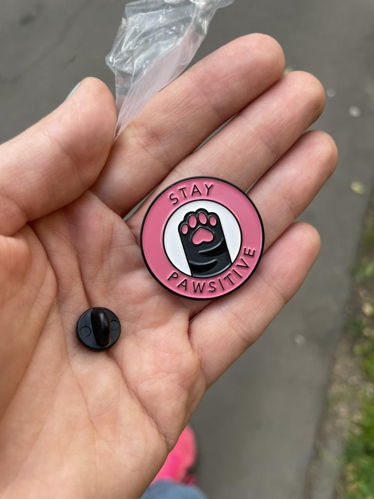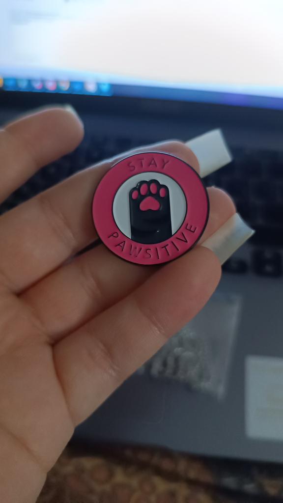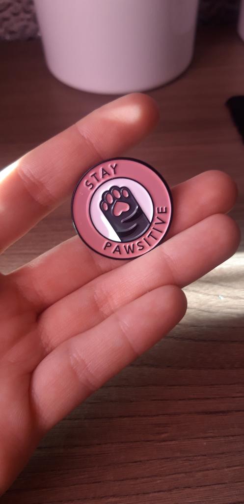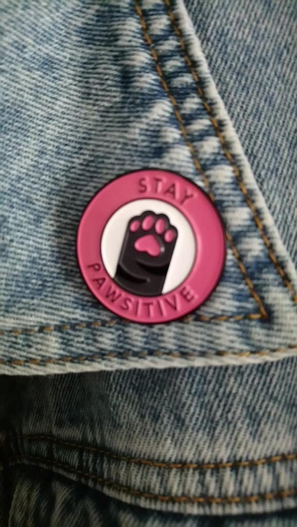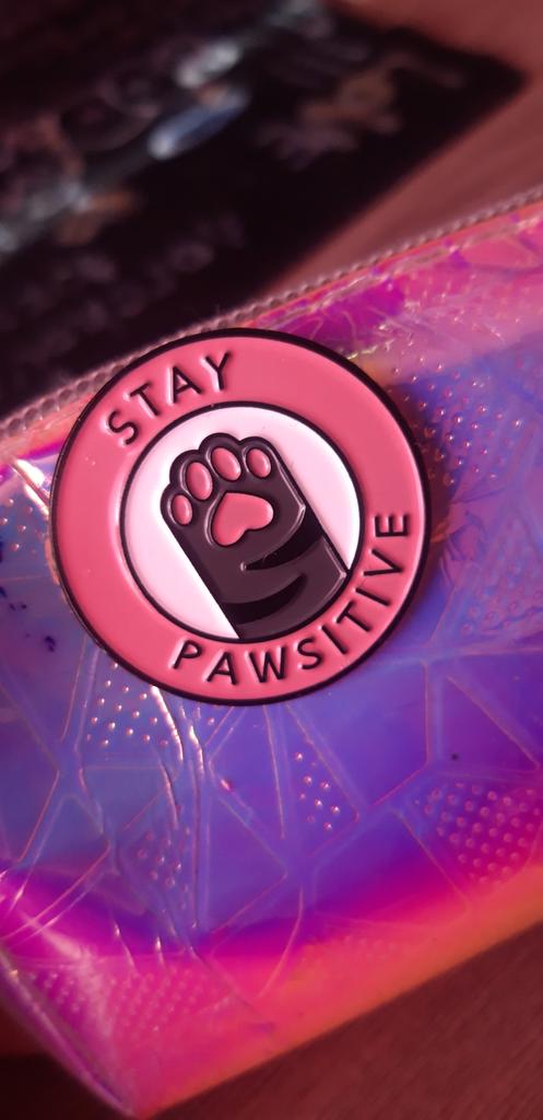 Cute Stay Pawsitive Pink Cat Brooch Enamel Pin Cartoon Animal Cute Pins Student Cowboy Badge Kitten Paw Brooch
