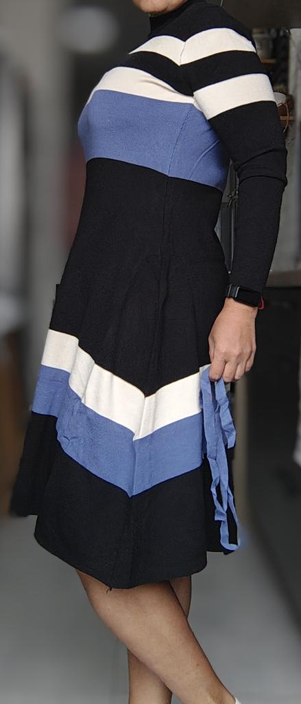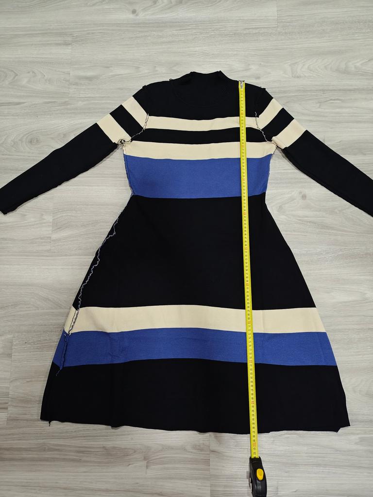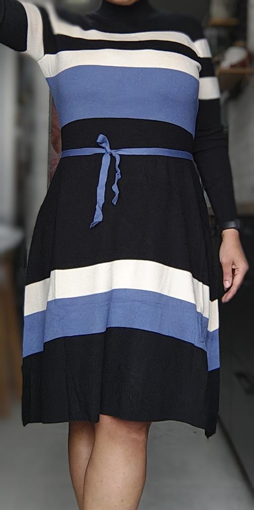 Korean Fashion Elegant Knitting Sweater Casual Dress Long Sleeve Lace-Up High End Stretch Knit Vintage Stripe Dresses