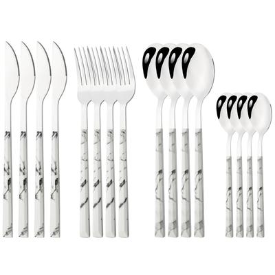16Pcs Stainless Steel Mirror Polished Tableware Set With Wooden Handle Dinnerware Cutlery Set Knives Forks Spoon Silverware Flatware Set