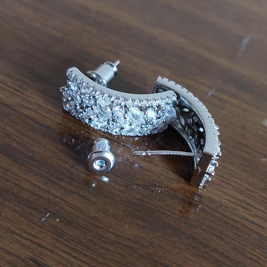 Exquisite Women's Silver Color Rectangular Earrings Vintage Flower Engagement Wedding Earrings Fashion Jewelry Gift