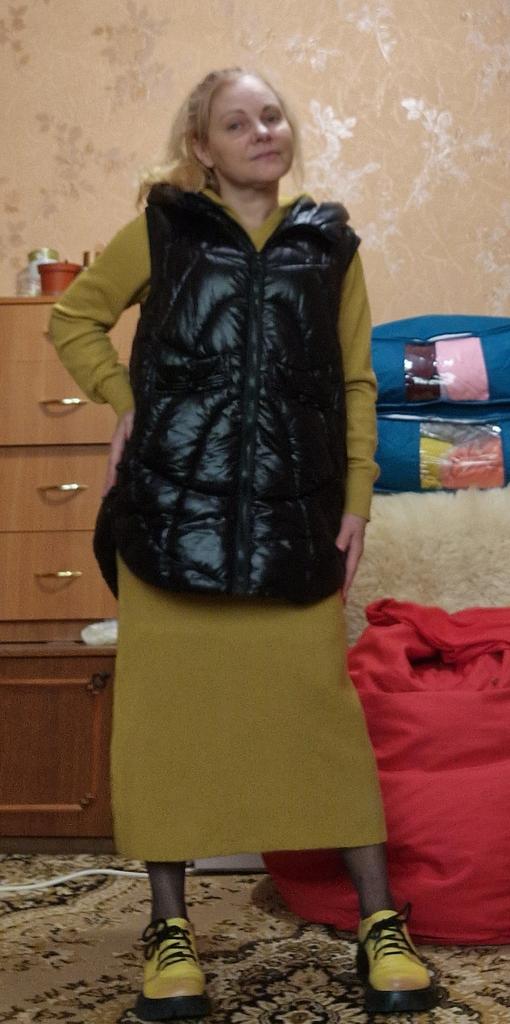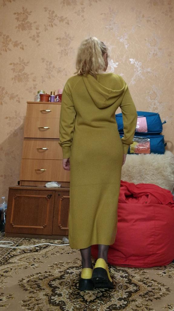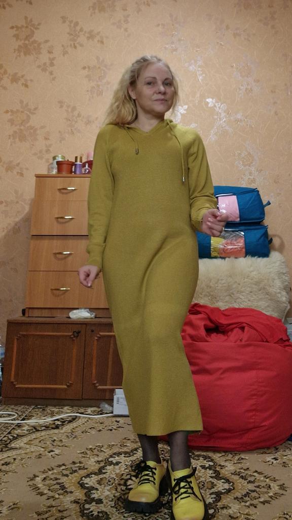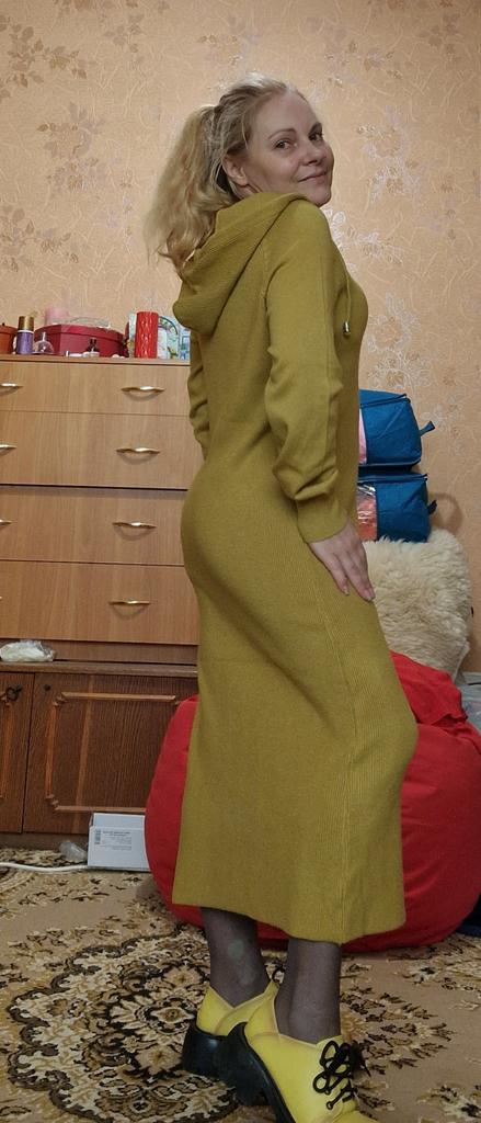 Chic knitted dress for autumn. Unfortunately, it arrived with a defect. Some stripe across the whole dress.