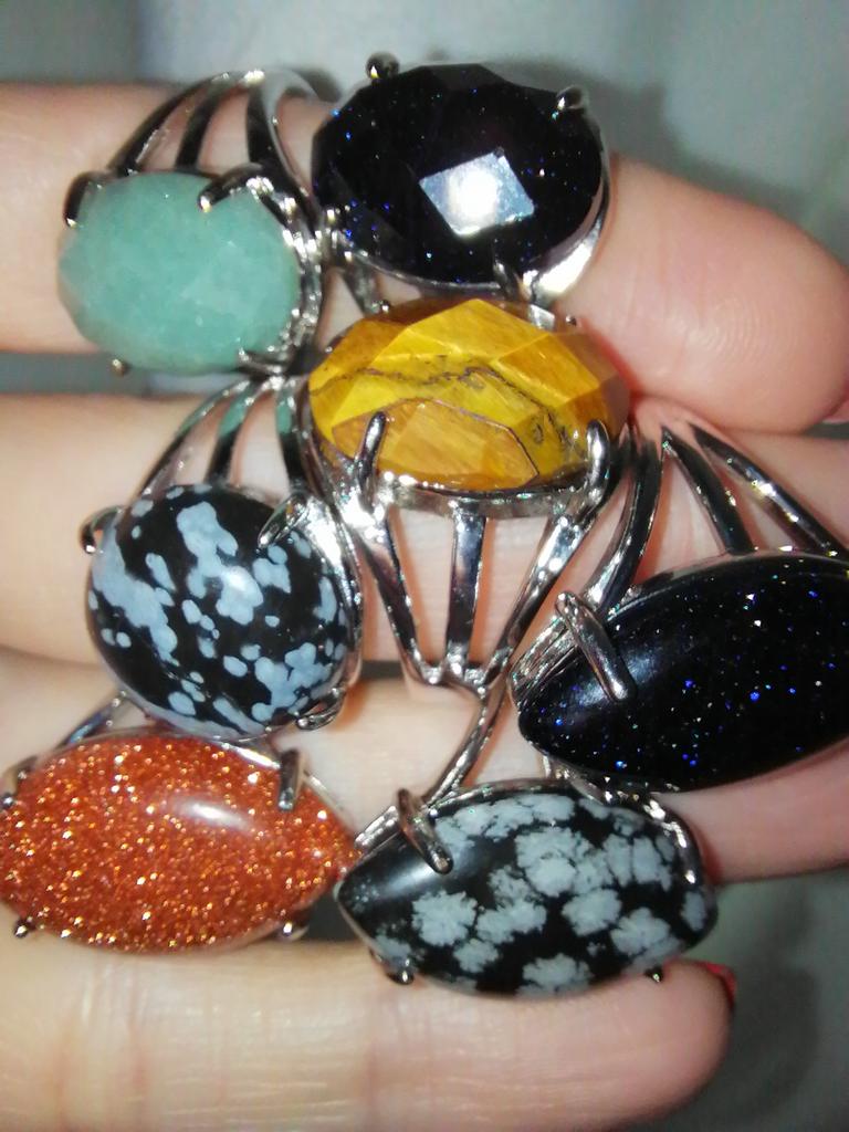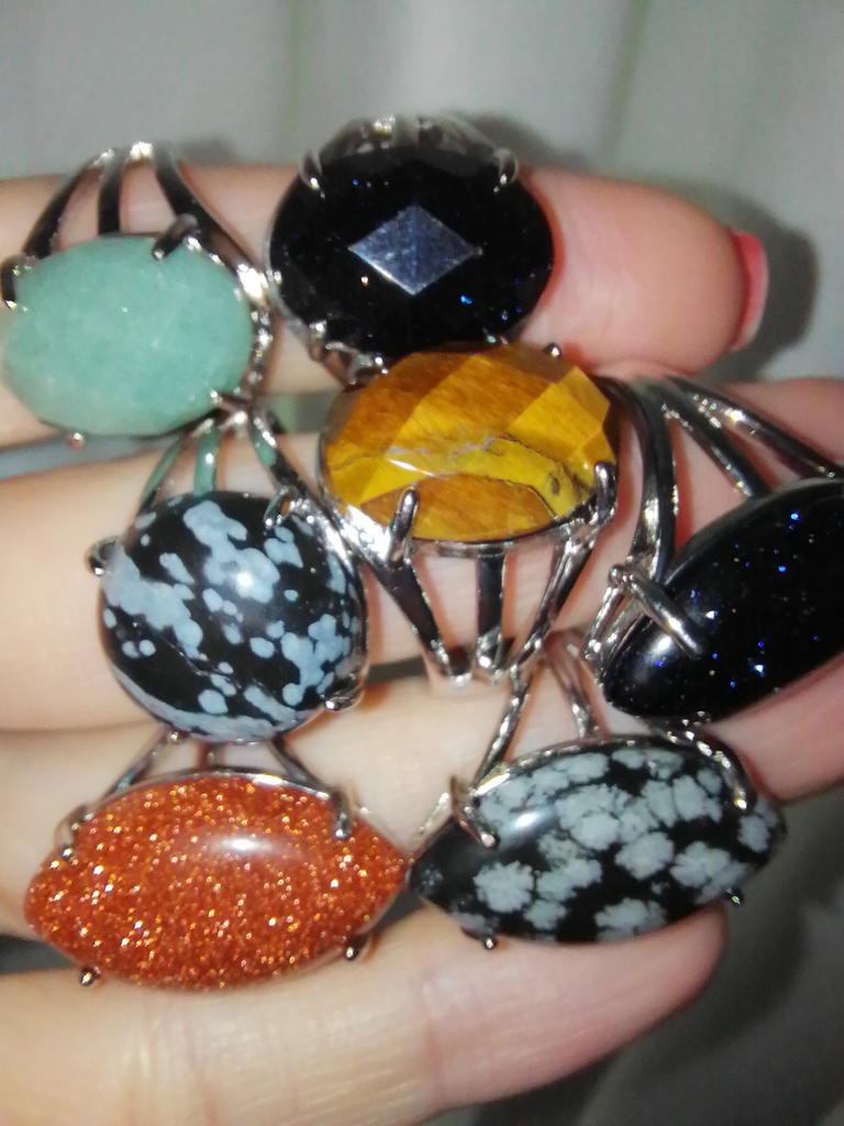 The order arrived on time, but not completely. Instead of 3 rings, so far 2 have arrived. The third is still on the way. The quality is good, but the amethyst is almost black. I wish it was a lot lighter. Color does not match photo. Finally the third ring with aventurine arrived. The color matches.