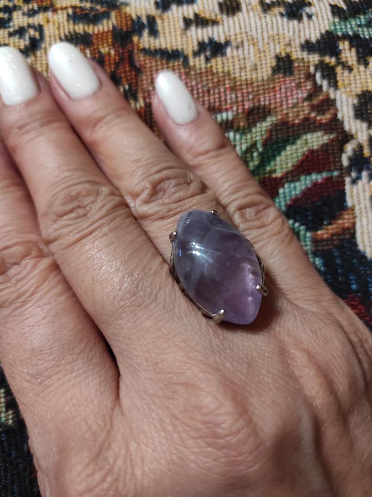 Very beautiful ring with amethyst. Neat work. The stone is well fixed. Looks great on the hand.