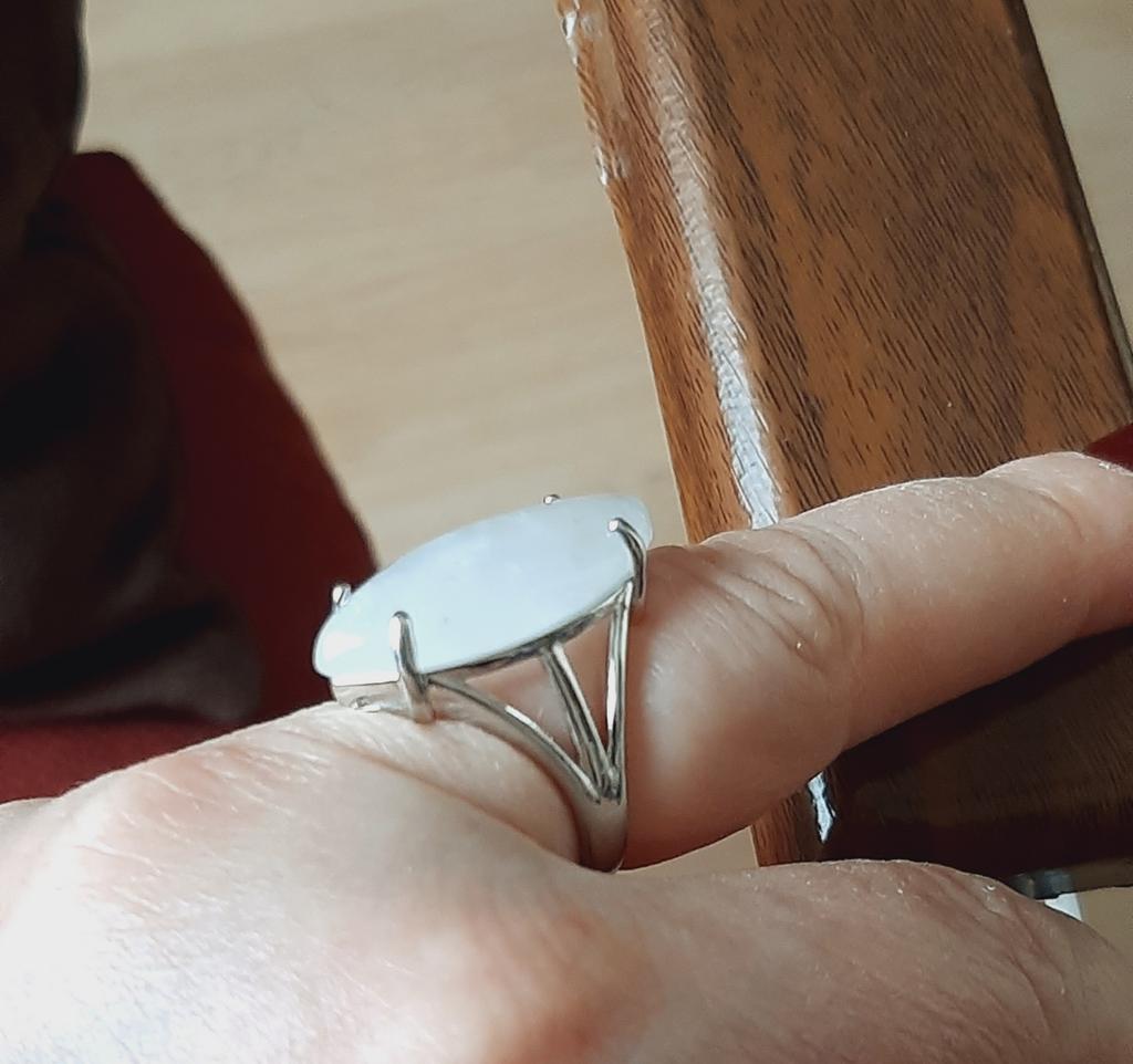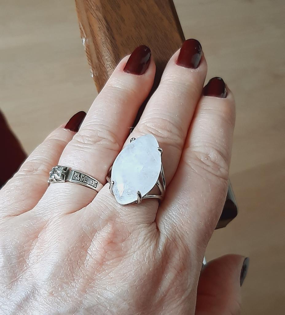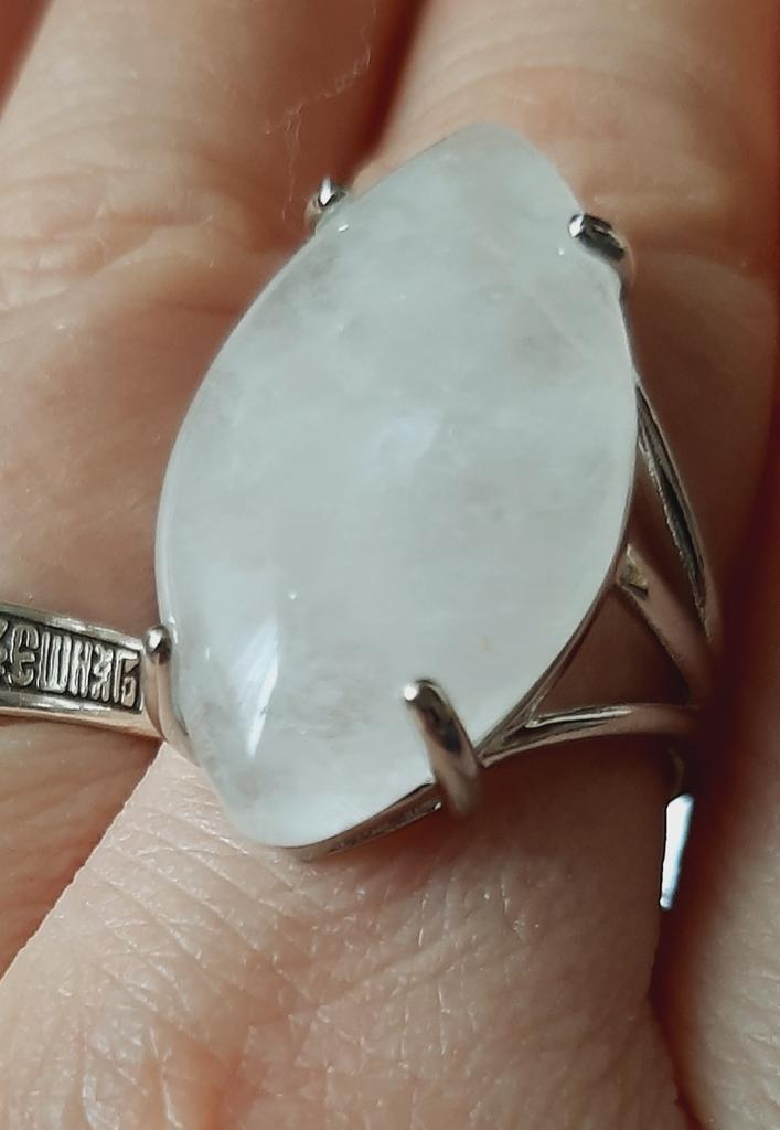 Simply a miracle😍😃💖 White quartz of perfect shape, securely protected by clamps👍🏻 Perfectly fits size 9, although it can be adjusted to be larger or smaller🤏🏻 Already in love with this magnificence💓💓💓