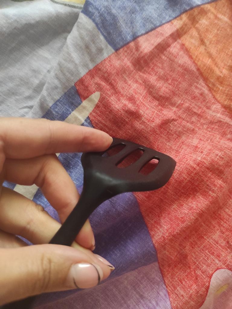 Good spatulas, but they come flat, you need to carefully bend them. The red one is of better quality than the black one, not as flexible. I have bought such spatulas before, the red one still serves, for a year already, but the black one only lasted three months.