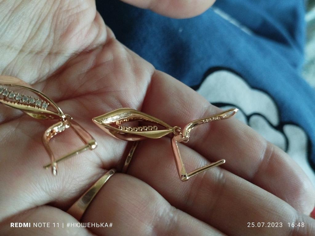 I received the goods, the earrings came in a combined parcel, they are beautiful, elegant, I ordered a chain with a pendant, you can say that it is not for everyday wear, it is more suitable for a festive outfit, the fasteners are reliable, I am satisfied with the purchase, thank you very much, I recommend