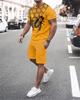 Men's Sports Suit T-shirt + Shorts Workout Clothes 2-piece Set of Multicolor 3D Red and Black Pattern Short-sleeved Sportswear