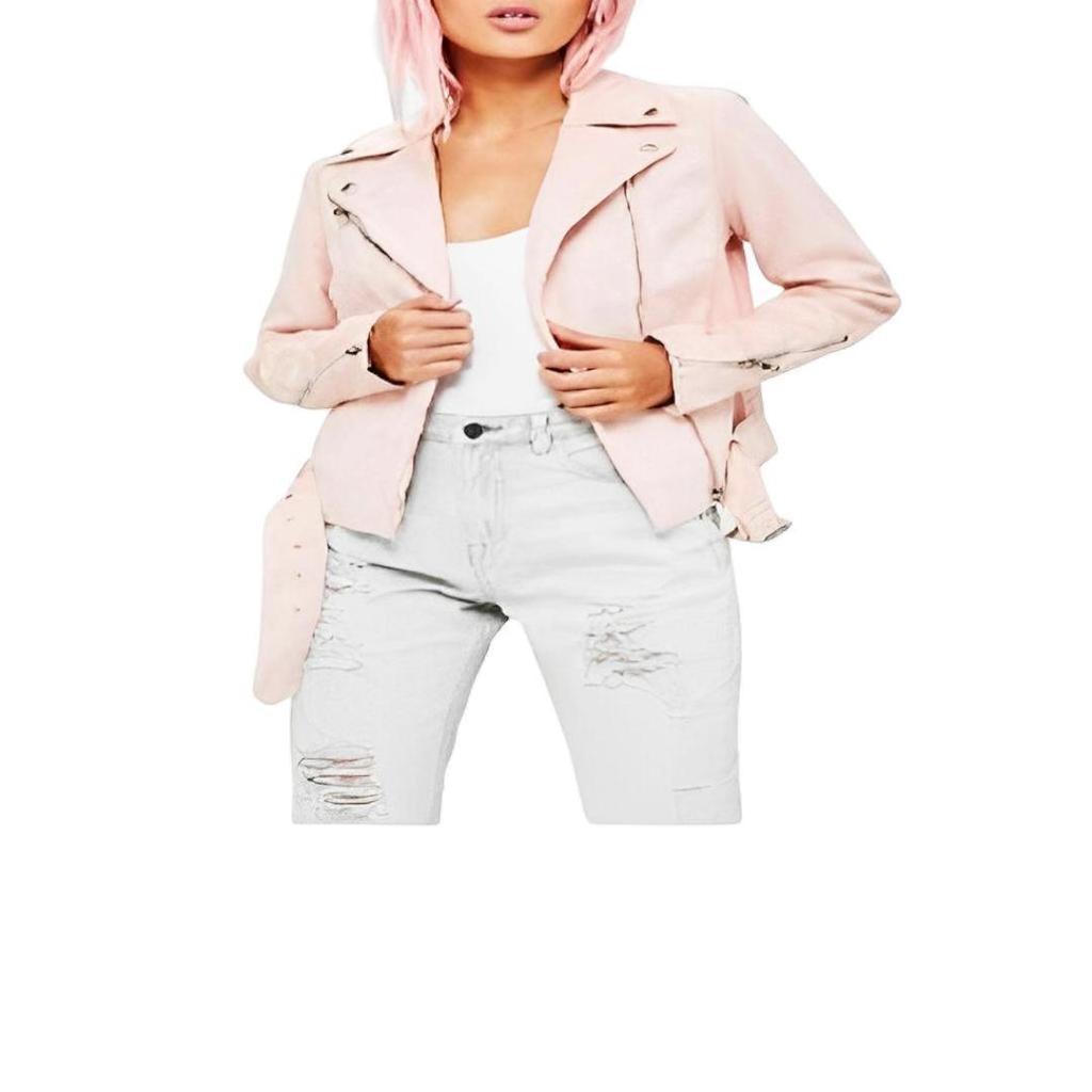 Noora New Women Lambskin Baby Pink Leather Jacket | BIKER JACKET With Zipper Closure | Belted Jacket
