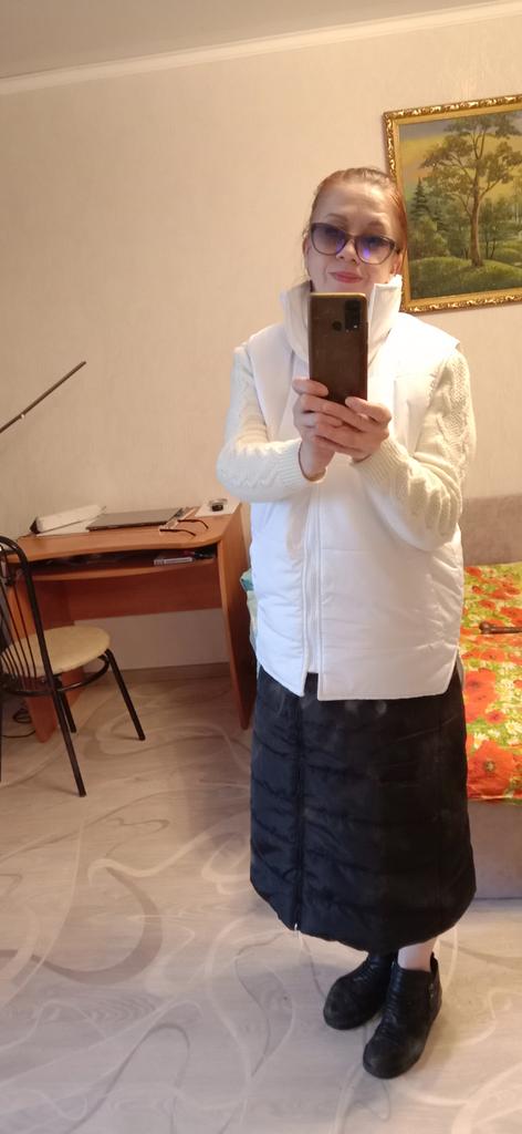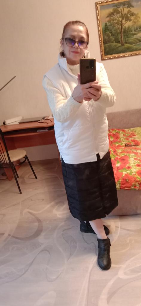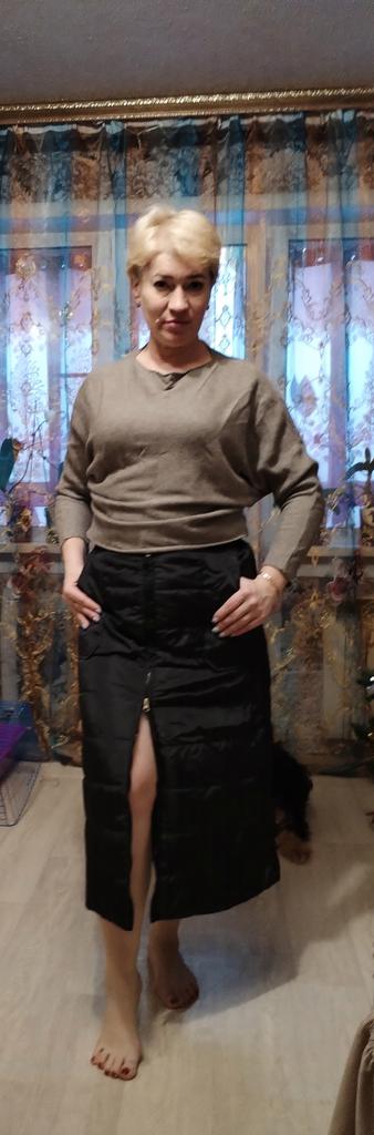Cute padded skirt. At OB 105, FROM 80 - excellent, doesn’t press anything. The quality of tailoring is so-so. One pocket is ripped open. At the back, the seam is not centered, but shifted to the right. The pocket is on the sole, the seam on the black is not very noticeable. Overall, not bad.
