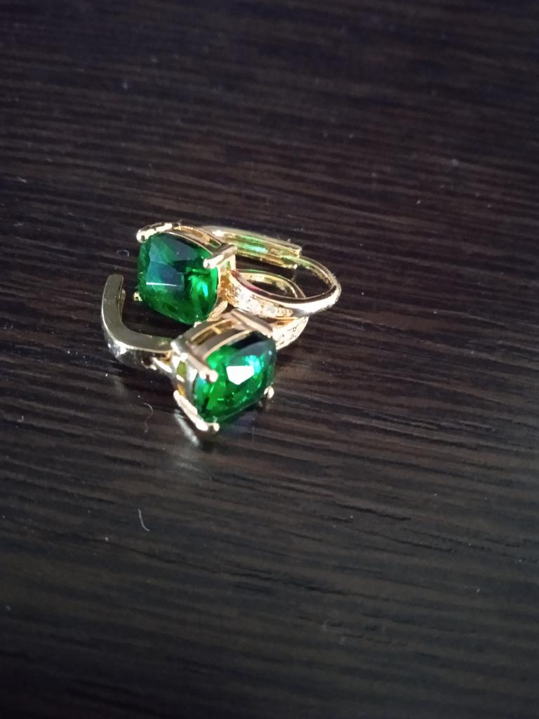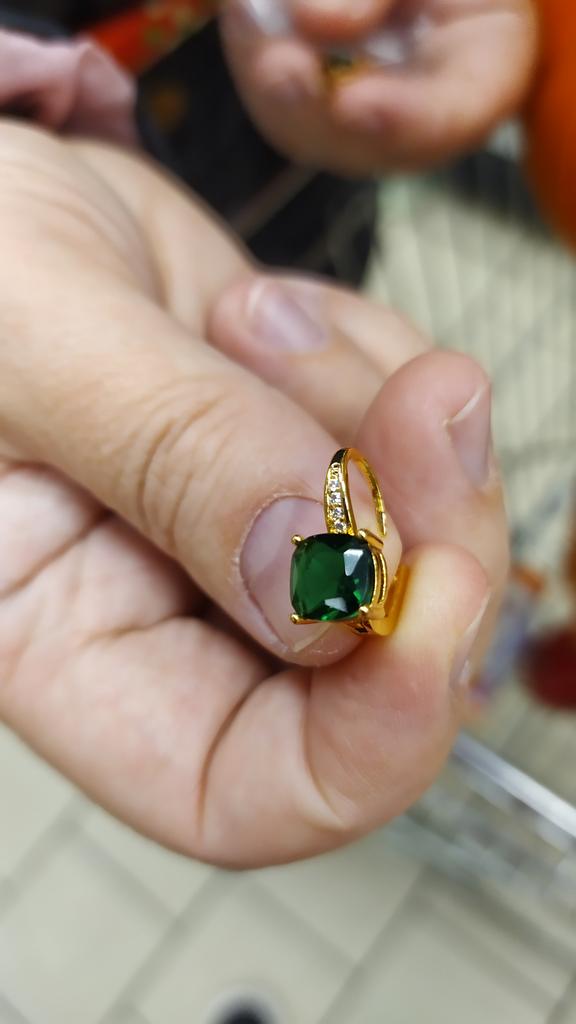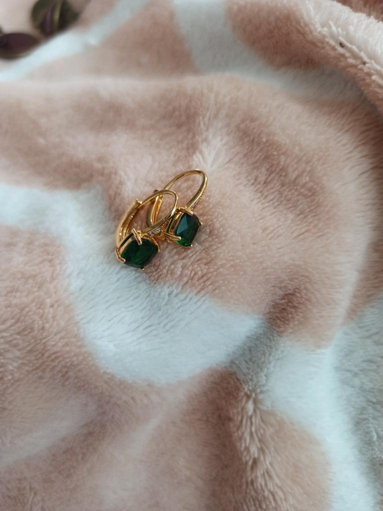 Silver Rose Gold Color Drop Hoop Earrings Geometric Emerald Cut Green Stone Wedding Dangle Earrings for Women