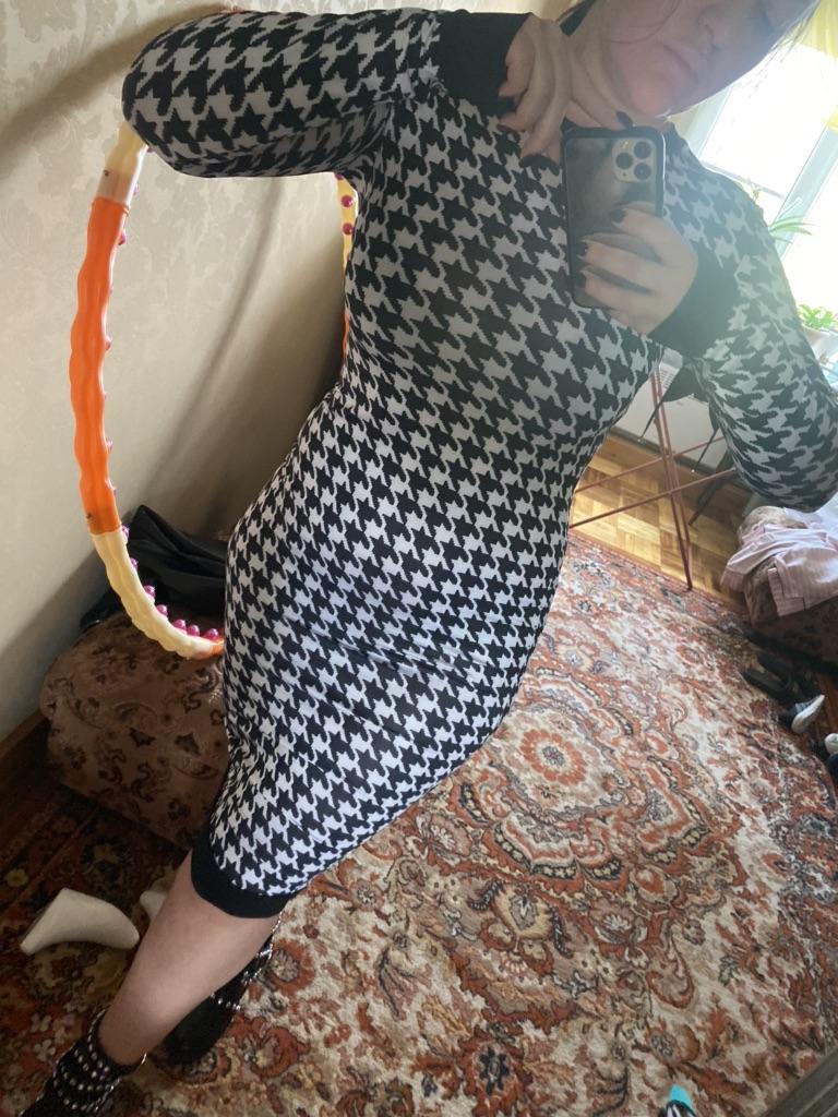 Houndstooth Print Women Long Sleeve Midi Dress Hollow Out Bodycon Sexy Streetwear Autumn Winter Club Elegant Slim