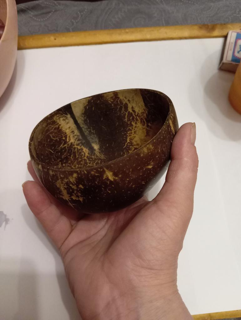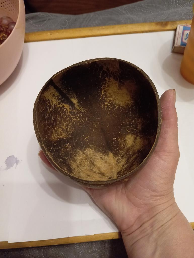 The bowl is cool, very natural, natural from real coconut, super packed π there is a moment of instability of the bottom, but in the morning for breakfast it is super, your hot porridge will not burn your hands, and the salad will sparkle with new colors ππ purely from the aesthetic side it is pleasant to hold and eat from it, I have a spoon for it from the same material and a fork π super, I really like it ππππ thank you π