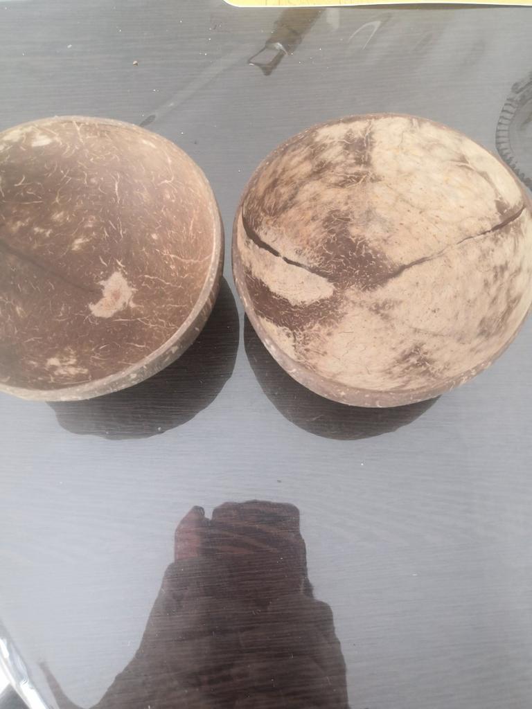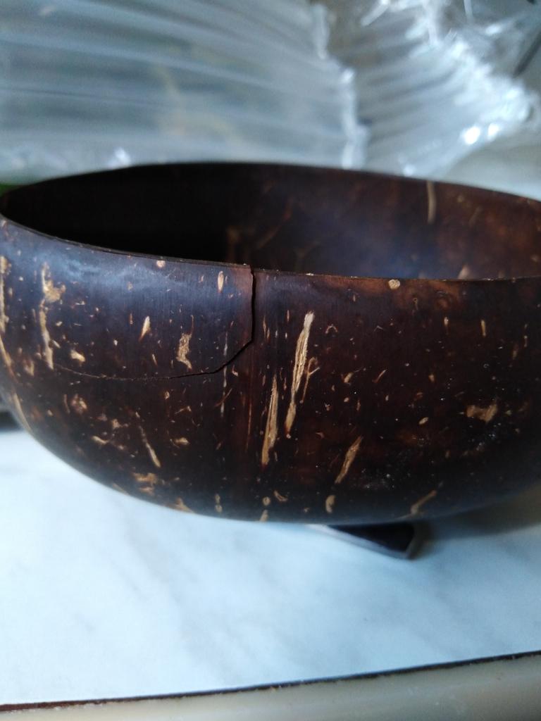 I received 3 coconut bowls... Itβs just tinny... All 3 bowls are askew... One of the bowls has a break.... Not made well!!! I wanted to give a gift.... But it wonβt work!!! It's a pity... ((