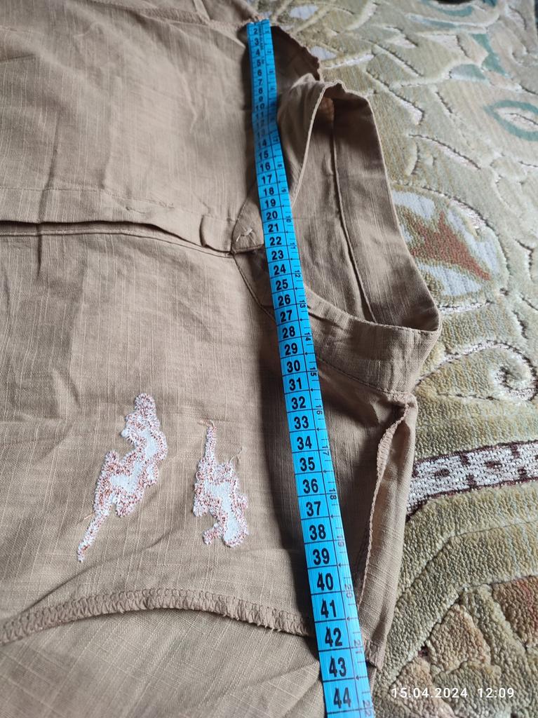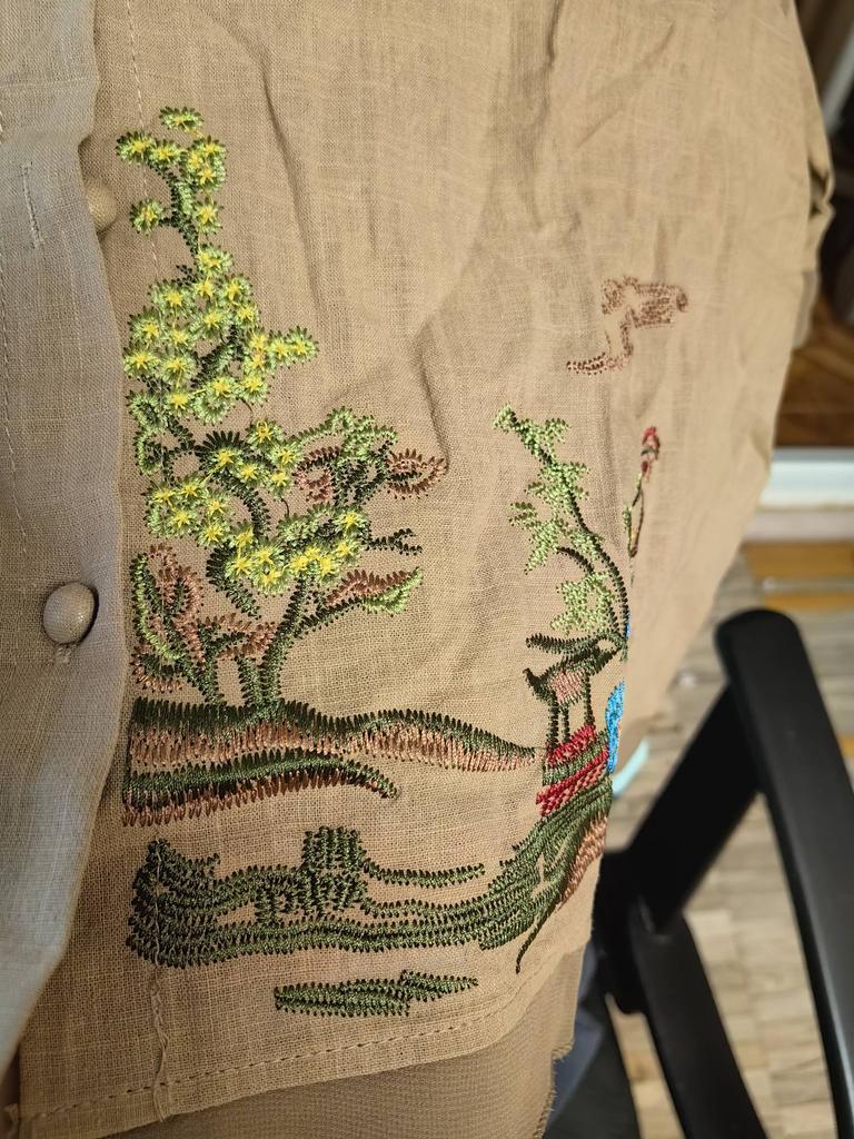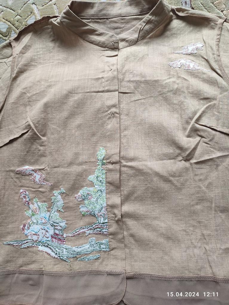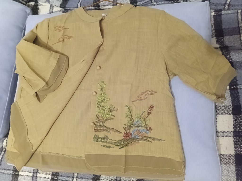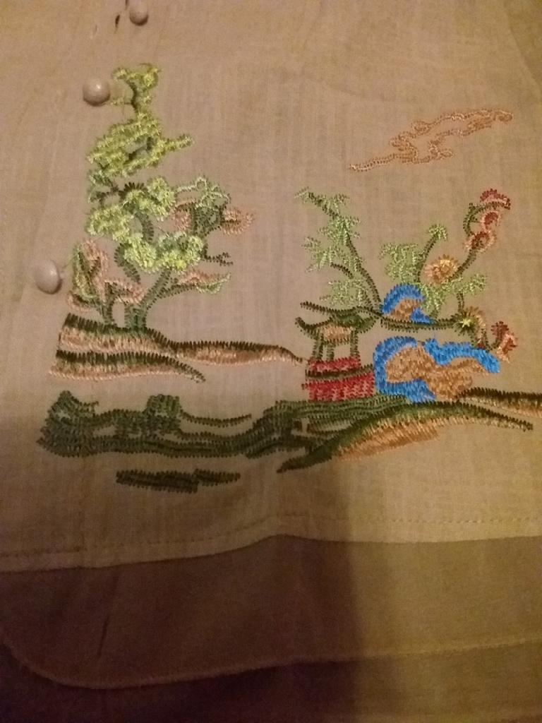 The blouse is sewn neatly, the embroidery is real, very cute. But the length is tiny, to the navel, for a short man.