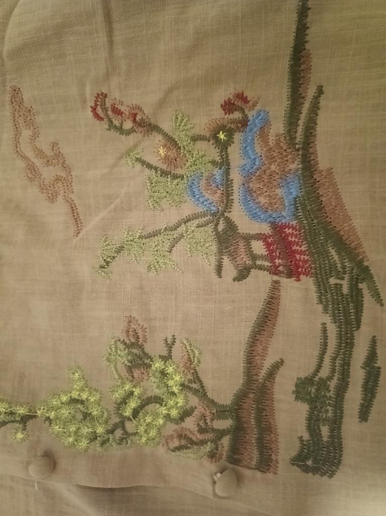 The material is pleasant, the embroidery is elegant, a few threads stick out