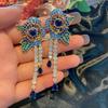 Luxury 925 Silver Needle 2022 New Earrings Color CZ Blue Rose Tassel Earrings for Women Trendy Elegant Jewelry Party Earrings