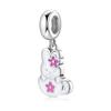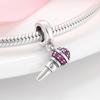 925 Sterling Silver Microphone Shape Flamingo Pink CZ Beads Fit Original Designer Charms Bracelet Bangles DIY Jewelry Making