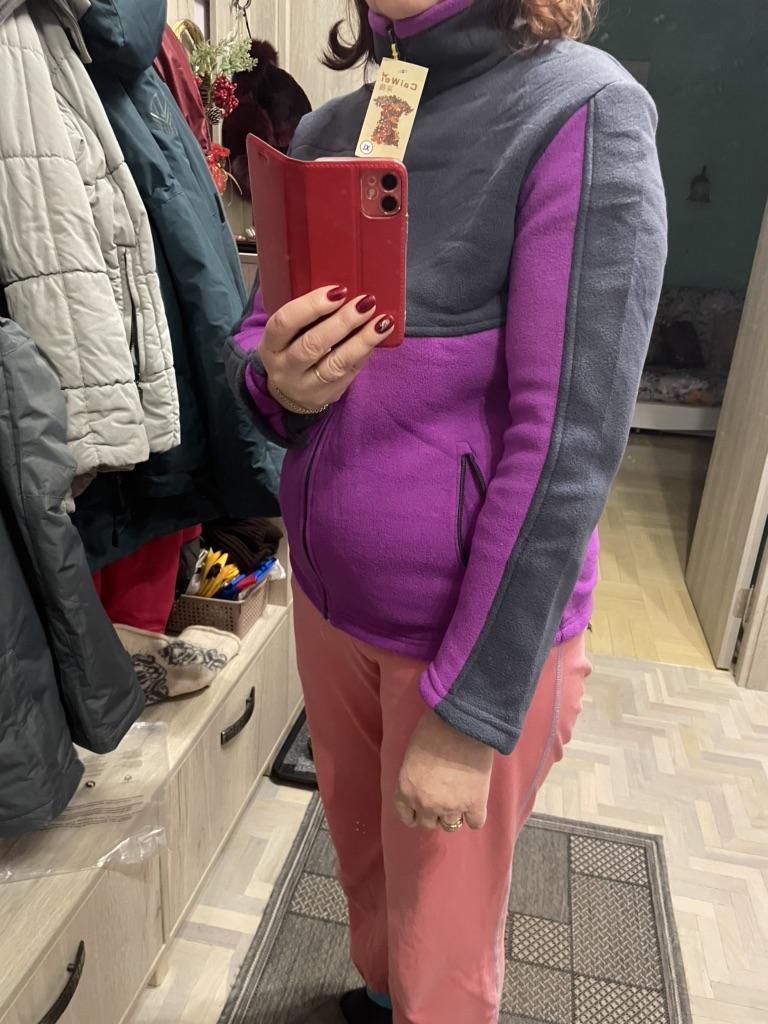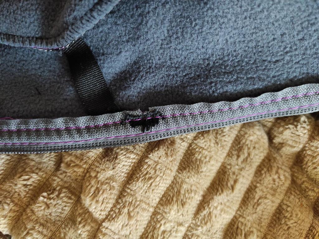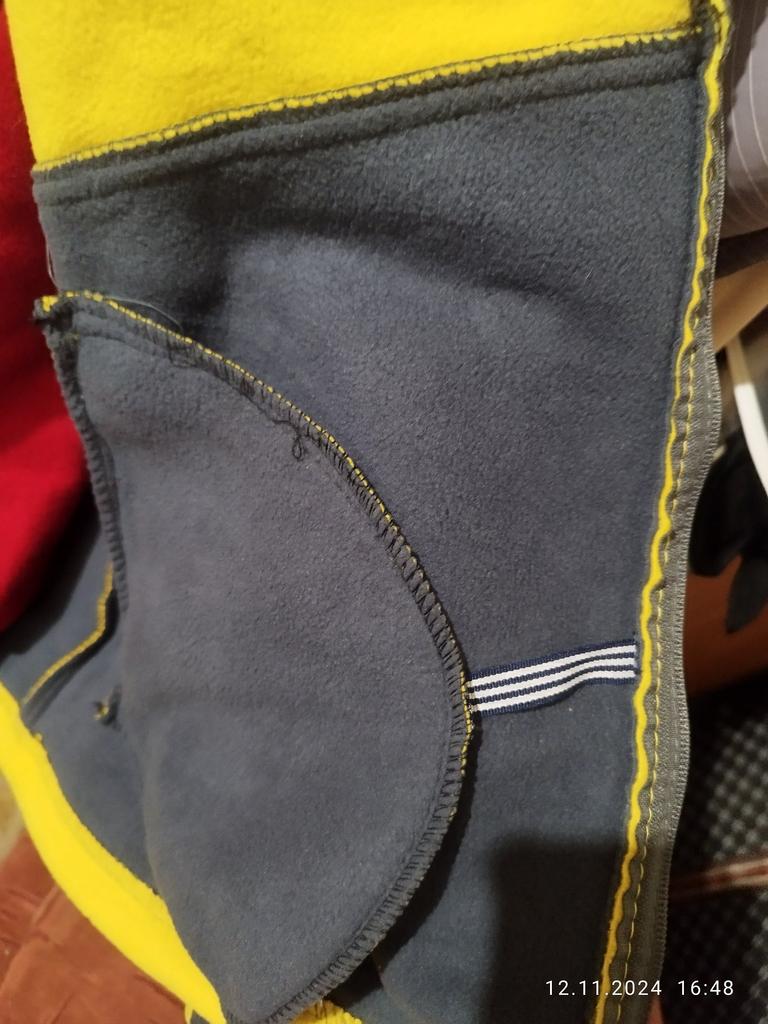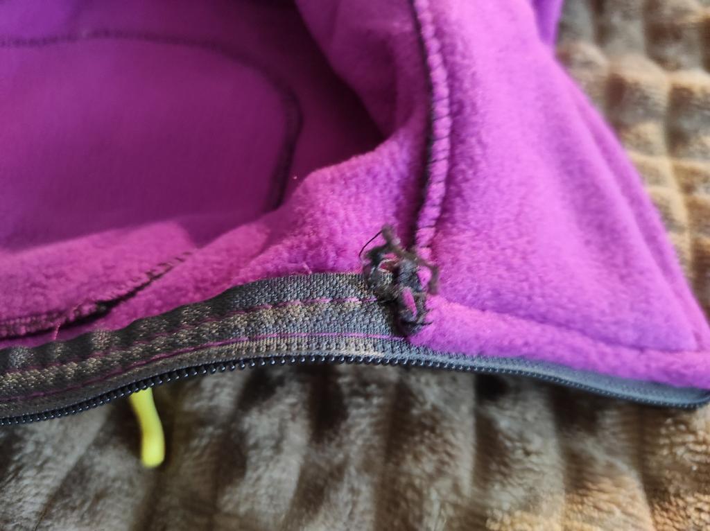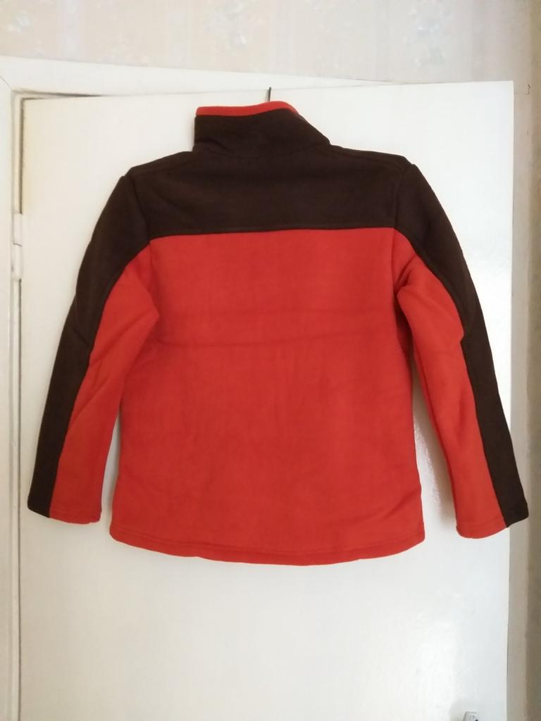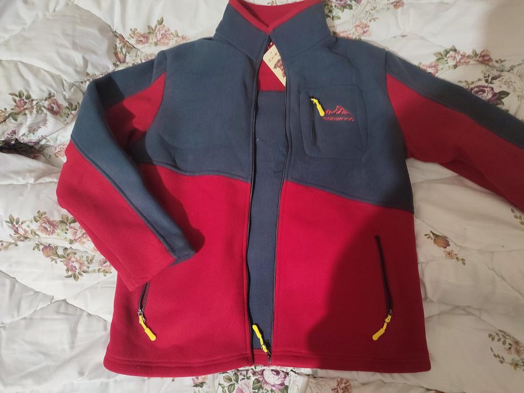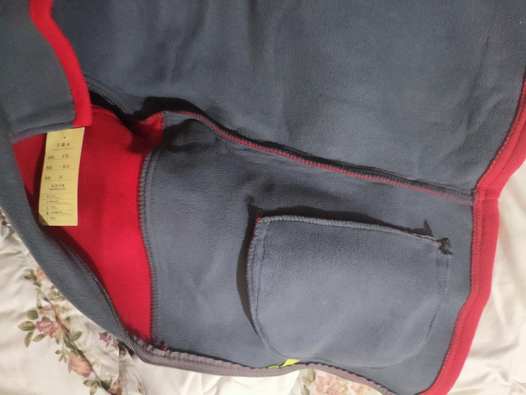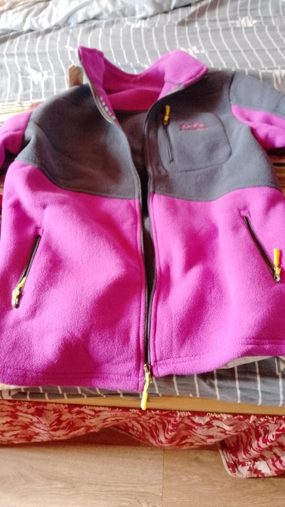 The fleece jacket is made of thick fleece. It is not sewn very neatly, though, there are a lot of protruding threads. It is too big in the shoulders and too small in the hips. There are also complaints about the locks: they get stuck.