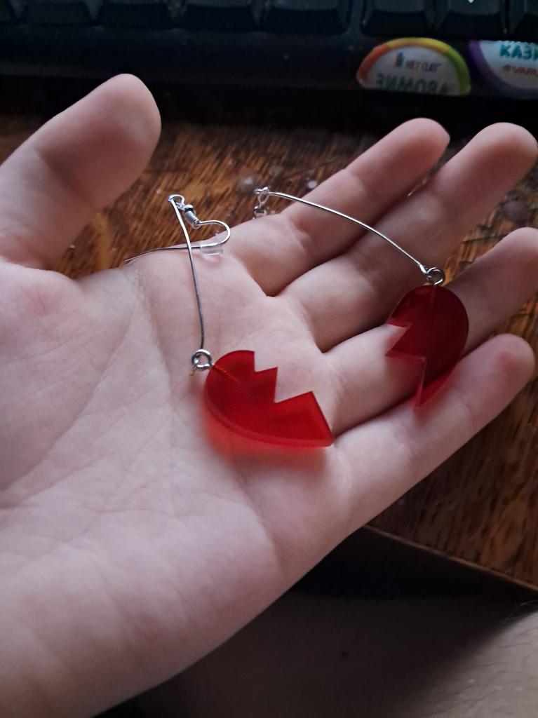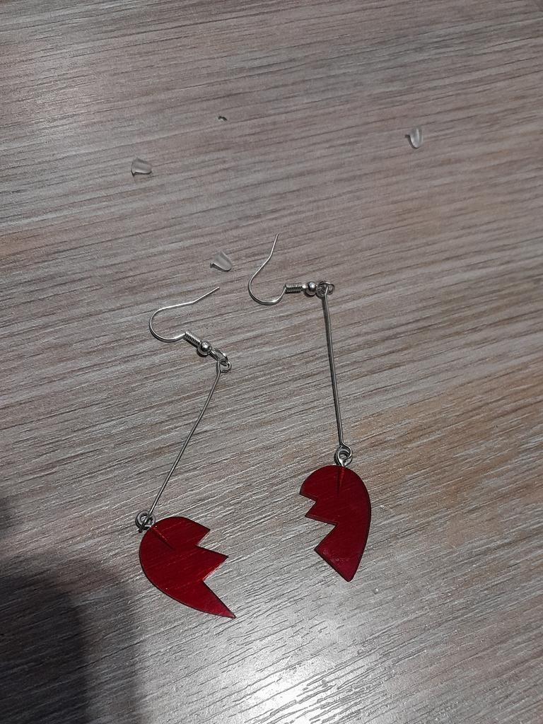 the earrings arrived a little bent, but this was easily fixed) there was a protective film on the hearts. TOP