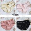 4pcs Panties Women's Cotton Briefs Female Japanese Thread System Breathable Women's Trunks Large Size Underpant