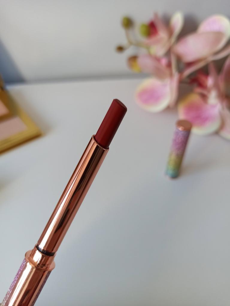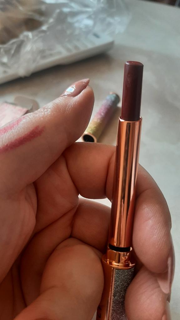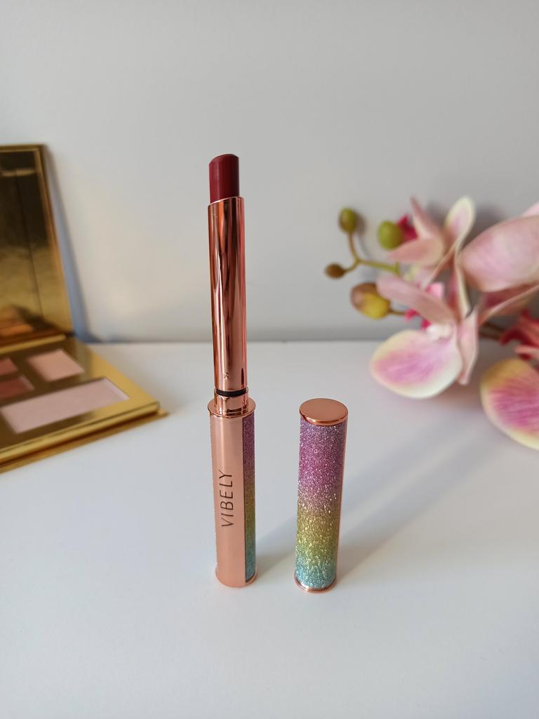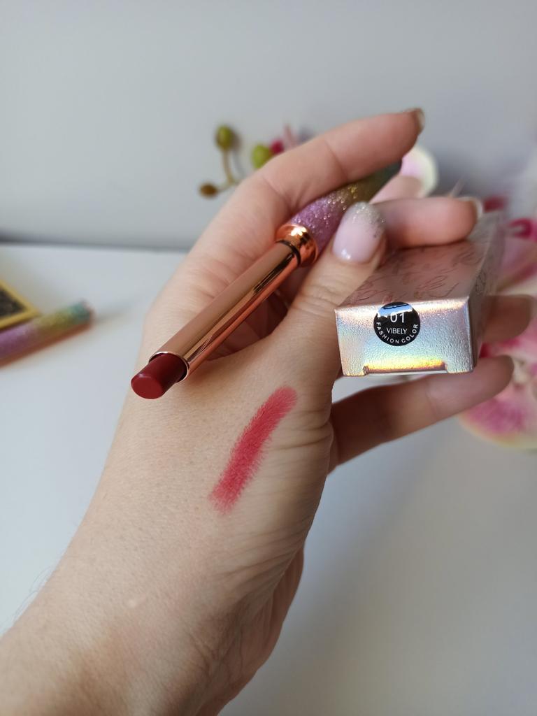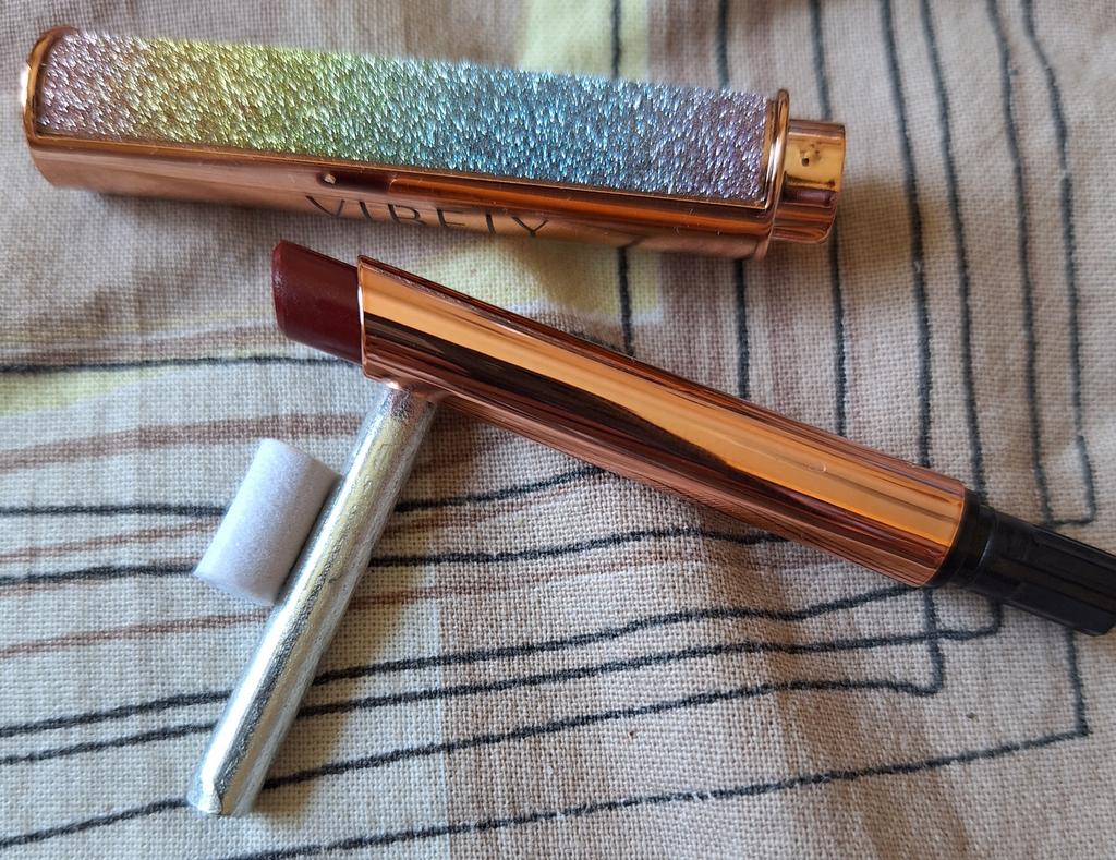 π Vibely-top lipstick π Here's a really a Jewelry lipstick: Please tell me if you love the packaging of this lipstick too! looks like a jewel and sure looks great when you take it out of your purse πππ As for the color I chose it is a dark red that goes towards plum.I think this color is perfect for winter so elegant β€οΈβ€οΈβ€οΈβ€οΈ The lipstick comes nicely packaged in a box, perfect for a gift. The texture is light, not sticky, excellent durability. The lipstick is not indelible but it fixes very well and stays on for a long time even if you eat and drink. π SIZE 3 gr of product. π USE The lipstick is easy to apply, without having to do many layers. The color is immediately intense and above all UNIFORM!! Quick drying π π LONG LASTING The lipstick is long lasting. I want to clarify that the lipstick is not indelible but it certainly lasts several hours. Despite this, the lipstick does not dry out the lips. ππππ CONCLUSION: I love this lipstick: This in my opinion is a great lipstick, with its soft and silky texture. Pleasant to wear and I recommend it ππππ