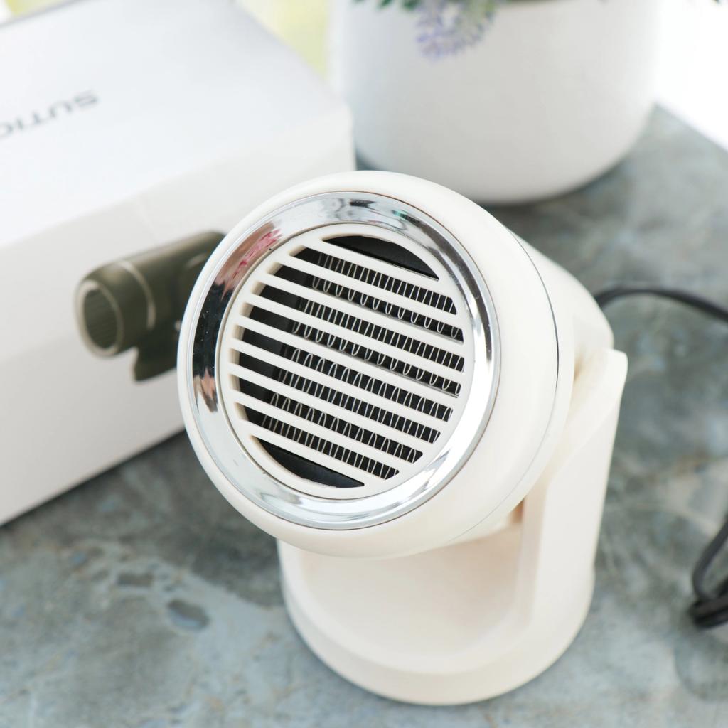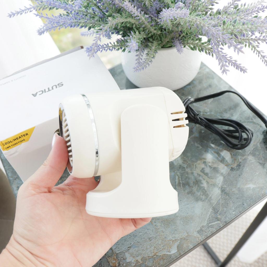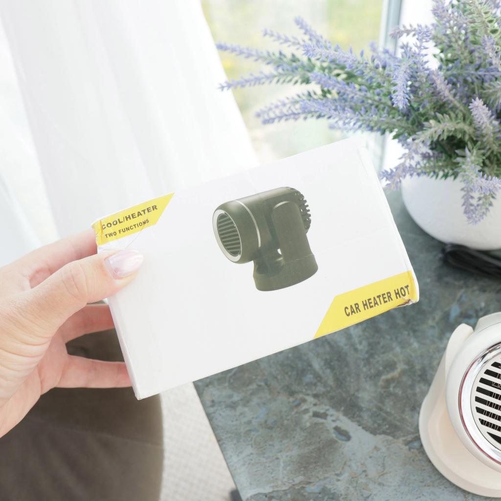 Portable car heater Powered by cigarette lighter. Has 2 operating modes: lower and higher temperature. Has a compact size. Made from shock-resistant plastic. Rotates around its axis 360°, which makes it easy to direct the warm air flow in the desired direction. Includes adhesive mount to fix the heater in the right place. Warms well. Cable length 1.4 m I can recommend it 🤗